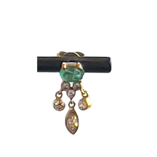 Gold Diamond and Emerald Tourmaline Dangle Earring
