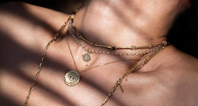 Virginie designs her jewelry with delicacy. She assembles the medals, the colored trimmings in vegetal silk and the fine stones. Its chains are revisited and worked with the greatest care in order to create pieces with pure lines and precious details. Her jewels are for her a second skin and an irreplaceable accessory: handmade lucky charms that you can wear alone or intertwined, according to your desires.