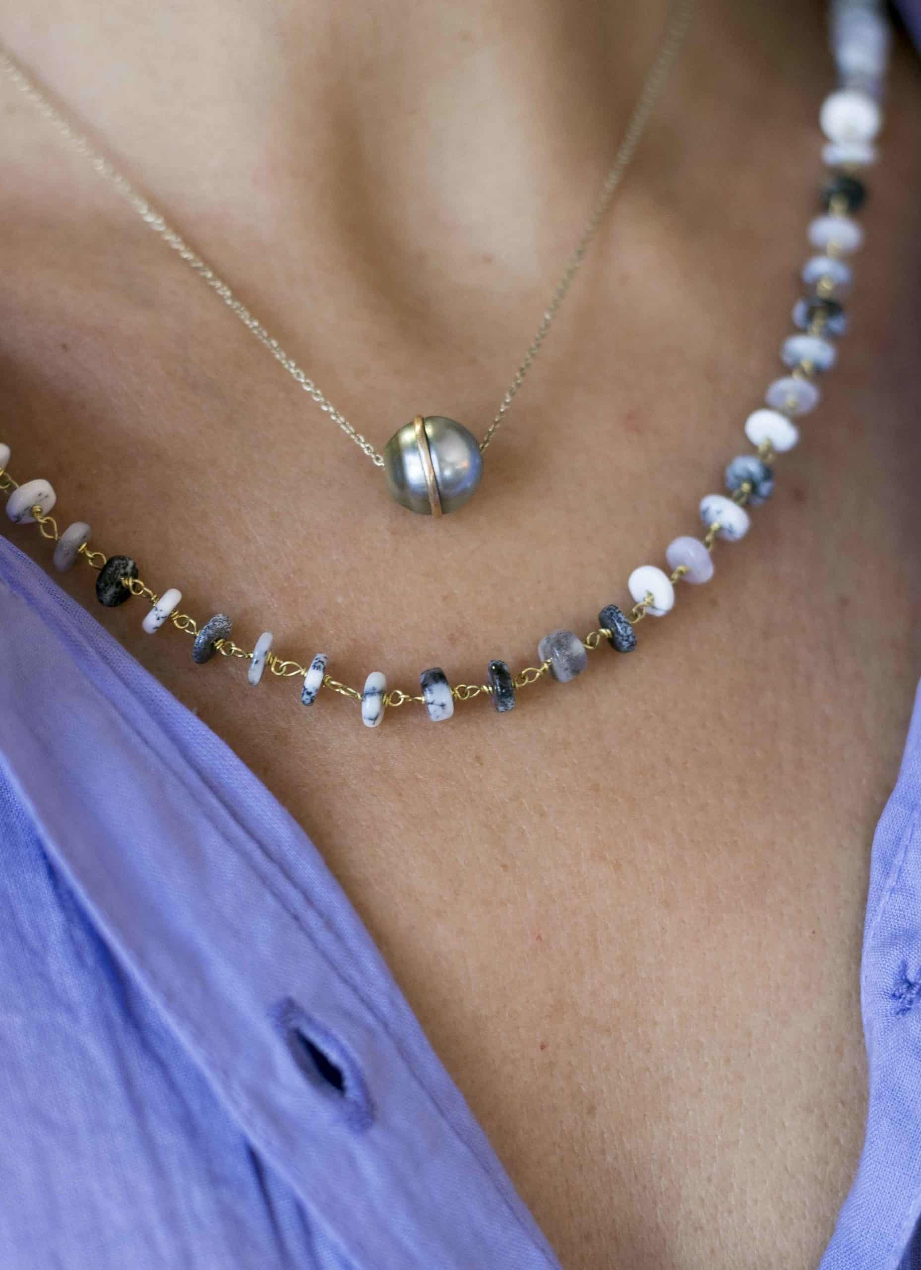 This Elegant Agath Bead Necklace from Comptoir 102 in 9K yellow gold set.