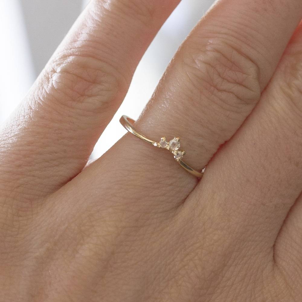 Laurie Fleming's tiny universal nesting ring, designed as a minimal beauty or to accent a growing stack of your favourite collection of rings. Creating such a warm and radiant pairing. Aika is a petite ethereal piece; a little melody of another realm. Yellow gold 14K with rose cut diamonds.