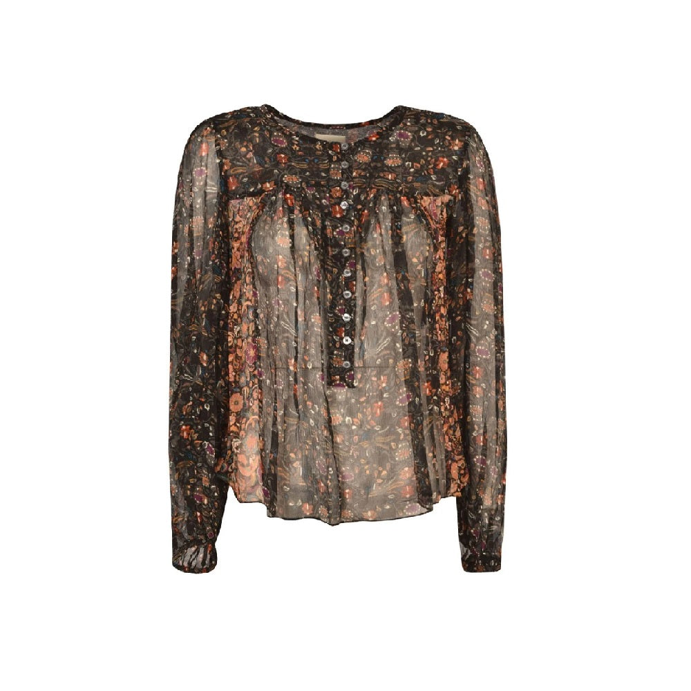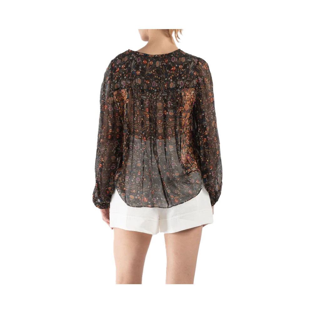 Ametissae Top from Isabel Marant is Lurex patchwork silk top with long sleeves and front adjustable cord.