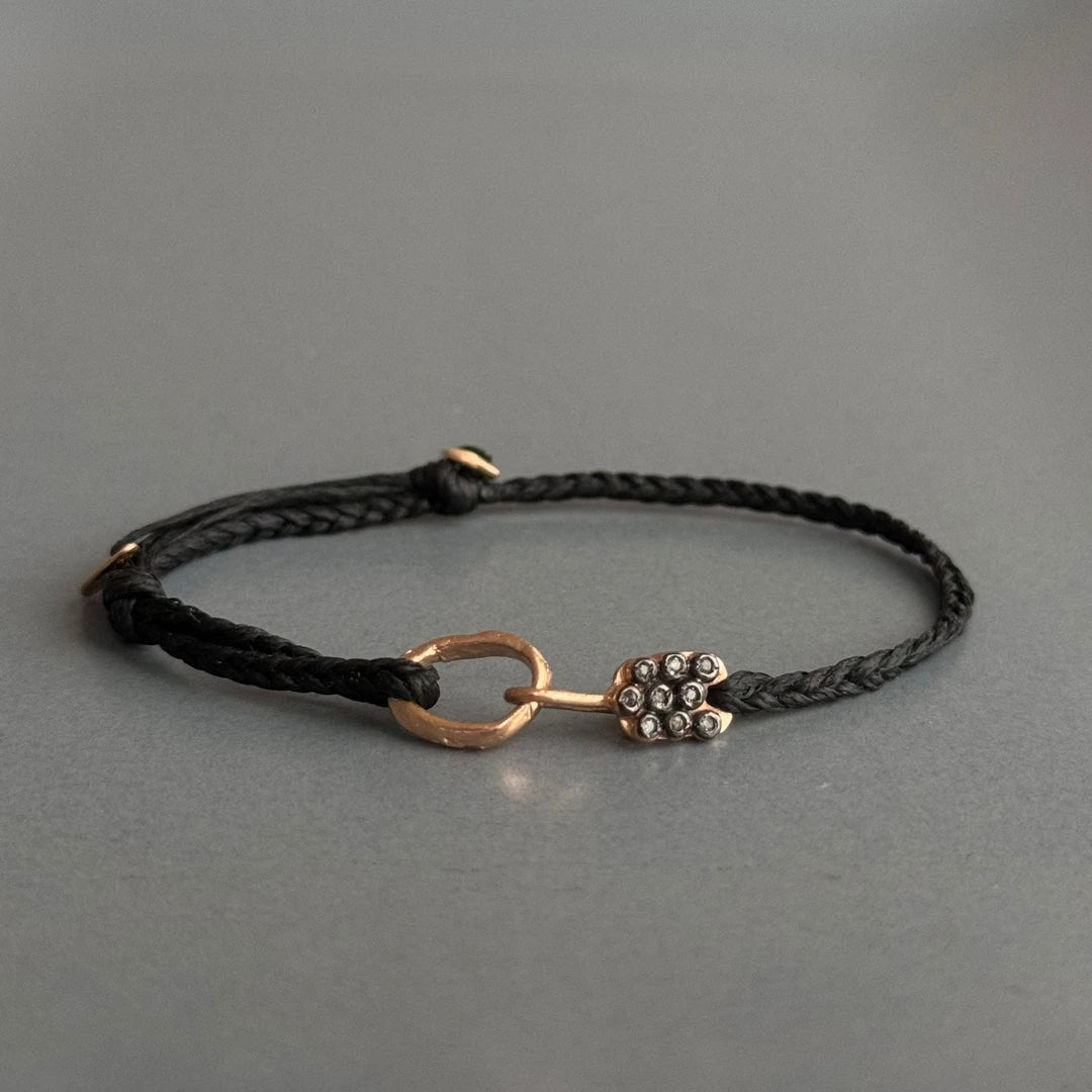 Black waxed thread bracelet with zircon stones set on 24k gold plated stirling silver