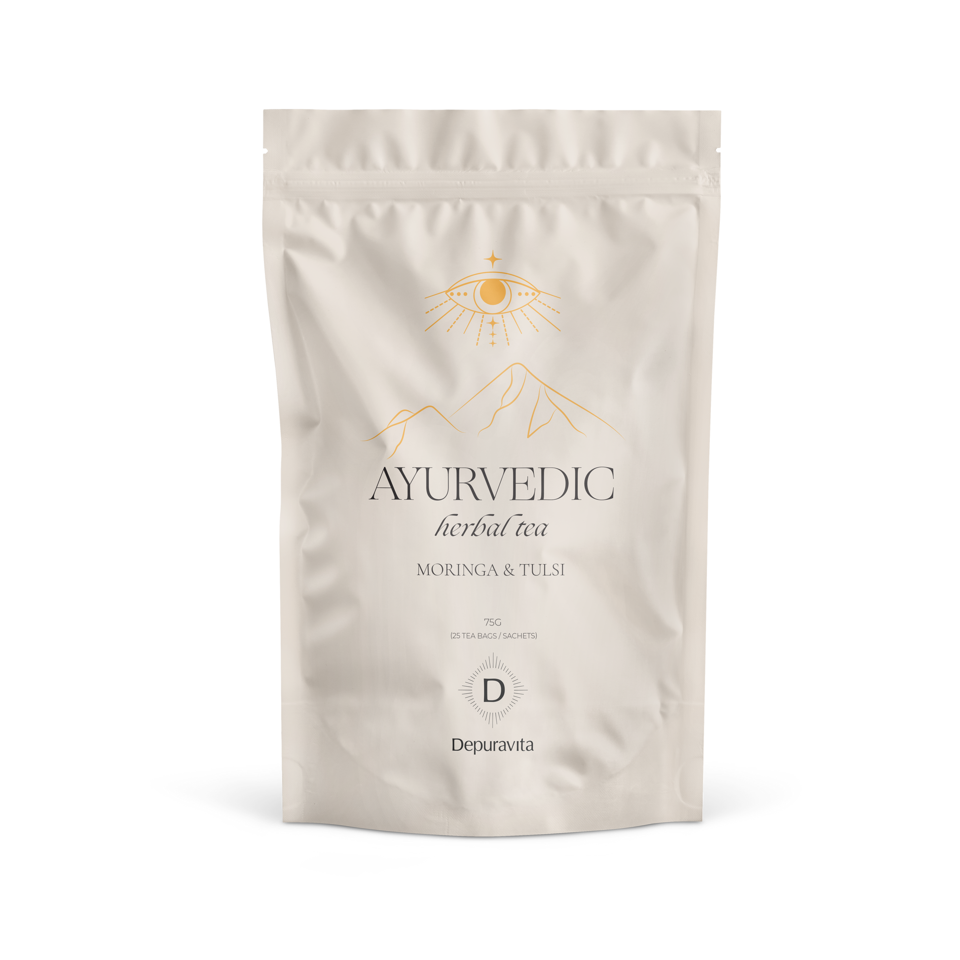 A rejuvenating blend crafted by Depuravita to support mind, body, and detox. This premium herbal infusion combines tulsi (holy basil) and moringa with green rooibos, ginger, cinnamon, vervain, chamomile, lavender, rose, and peach. Each sip delivers a harmonious balance of soothing and revitalizing botanicals.