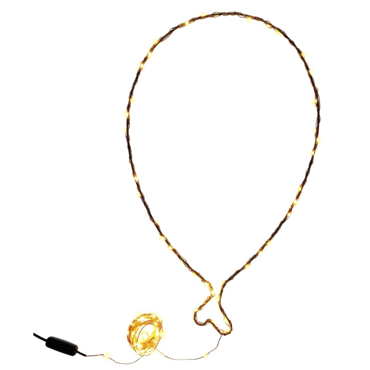 This baloon decoration by Parisian artist Zoe Rumeau is sculptured in soldered iron wire, with garland wrapped around led light. It can be hung on a wall or simply placed on a shelf.