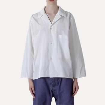 The Barry Shirt from Sofie D'Hoore is an oversized lapel collar shirt with a front button enclosure. Designed with drop shoulders, front chest pocket, and a slit on both sides.