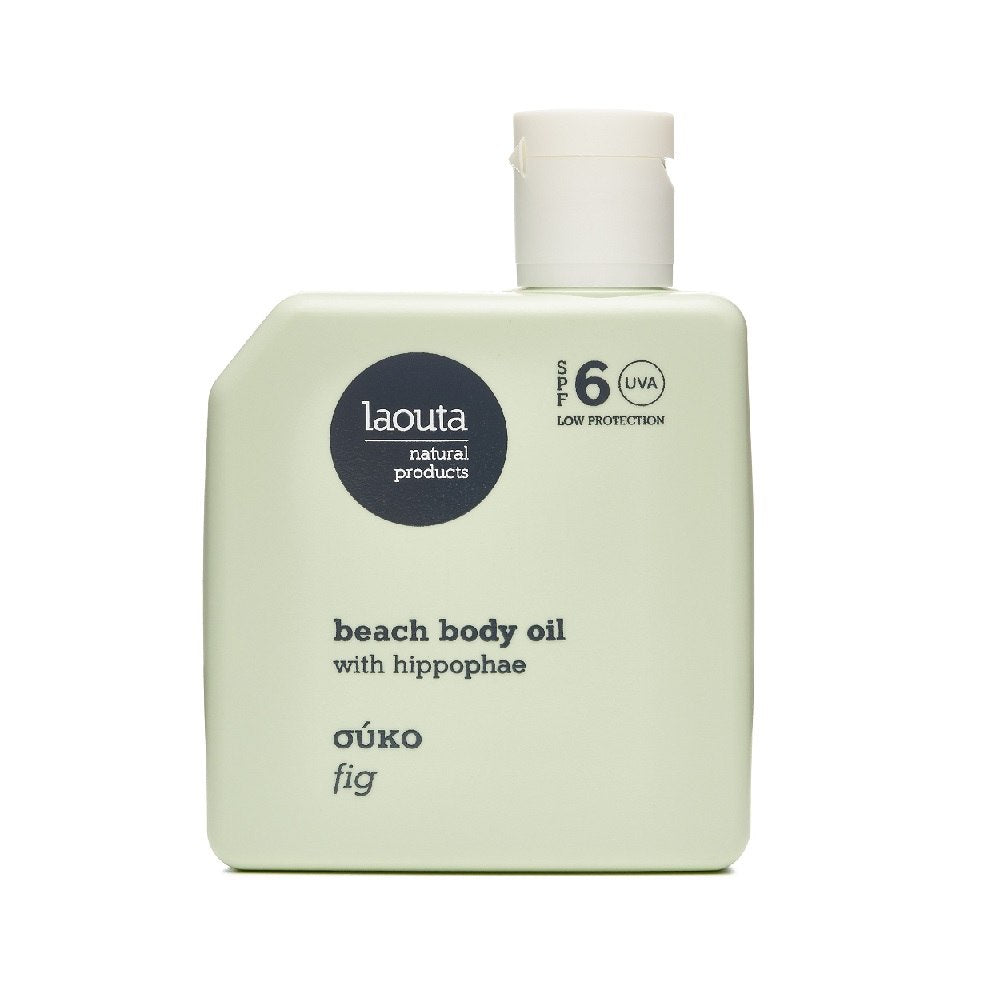 Laouta’s Fig Beach Body Oil with Hippophae (SPF 6) is a natural, golden-hued tanning oil infused with fig, antioxidant-rich sea buckthorn, and soothing mastic to nourish skin while enhancing a deep, long-lasting tan. Enriched with calendula, red pepper, and alkanet, it accelerates bronzing, hydrates, and provides mild UVA/UVB protection. Vegan, cruelty-free, water-resistant, and packaged in eco-friendly sugar‑cane bottles, it's a skin-loving, eco-conscious choice for sun-loving days.