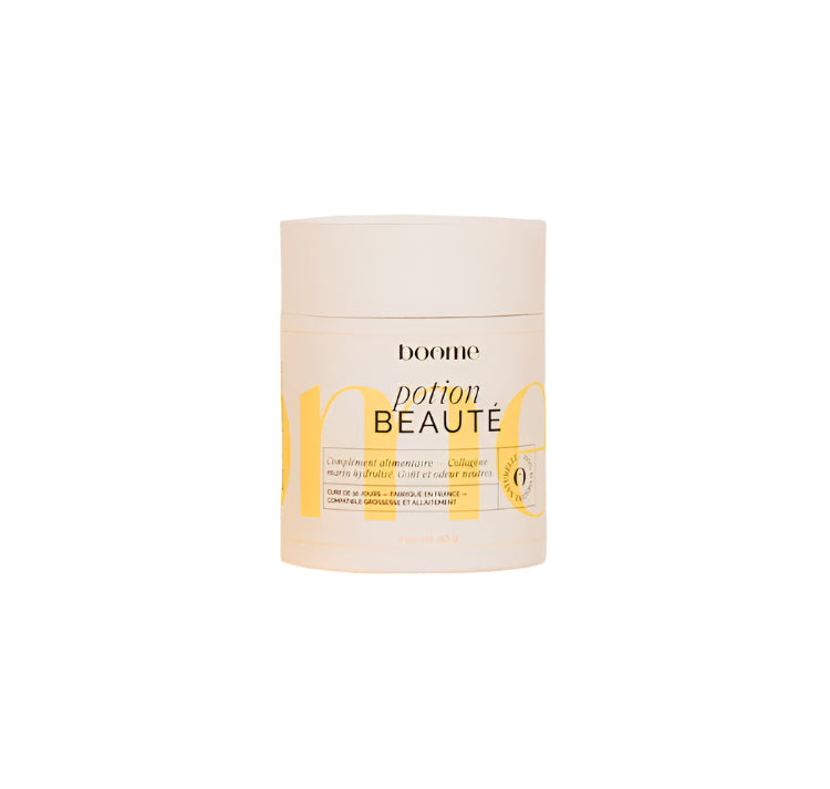 Boome's Beauty Potion is a food supplement with type 1 marine collagen that's clinically proven on promoting wrinkle reduction, skin hydration, and radiance. Boome's patented collagen complex, vitamins and minerals, has been formulated by women's health experts to support the loss of collagen that the body experiences from the age of 25, and more particularly during and after pregnancy.it has a neutral taste, odor, and lower molecular weight for optimal efficacy and absorption