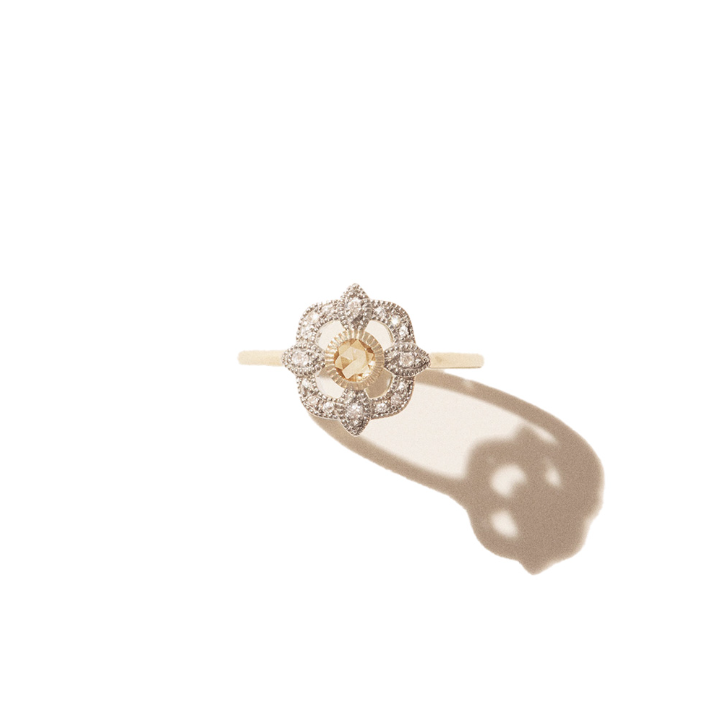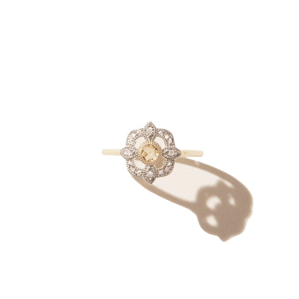 Pascale Monvoisin's Bettina Ring is an exquisite testament to contemporary elegance. Crafted in 9-carat yellow gold and Silver 925, it radiates a sophisticated charm. Adorned with diamonds, this ring seamlessly combines modern design with timeless allure, making it a captivating and versatile accessory that adds a touch of luxury to any look.