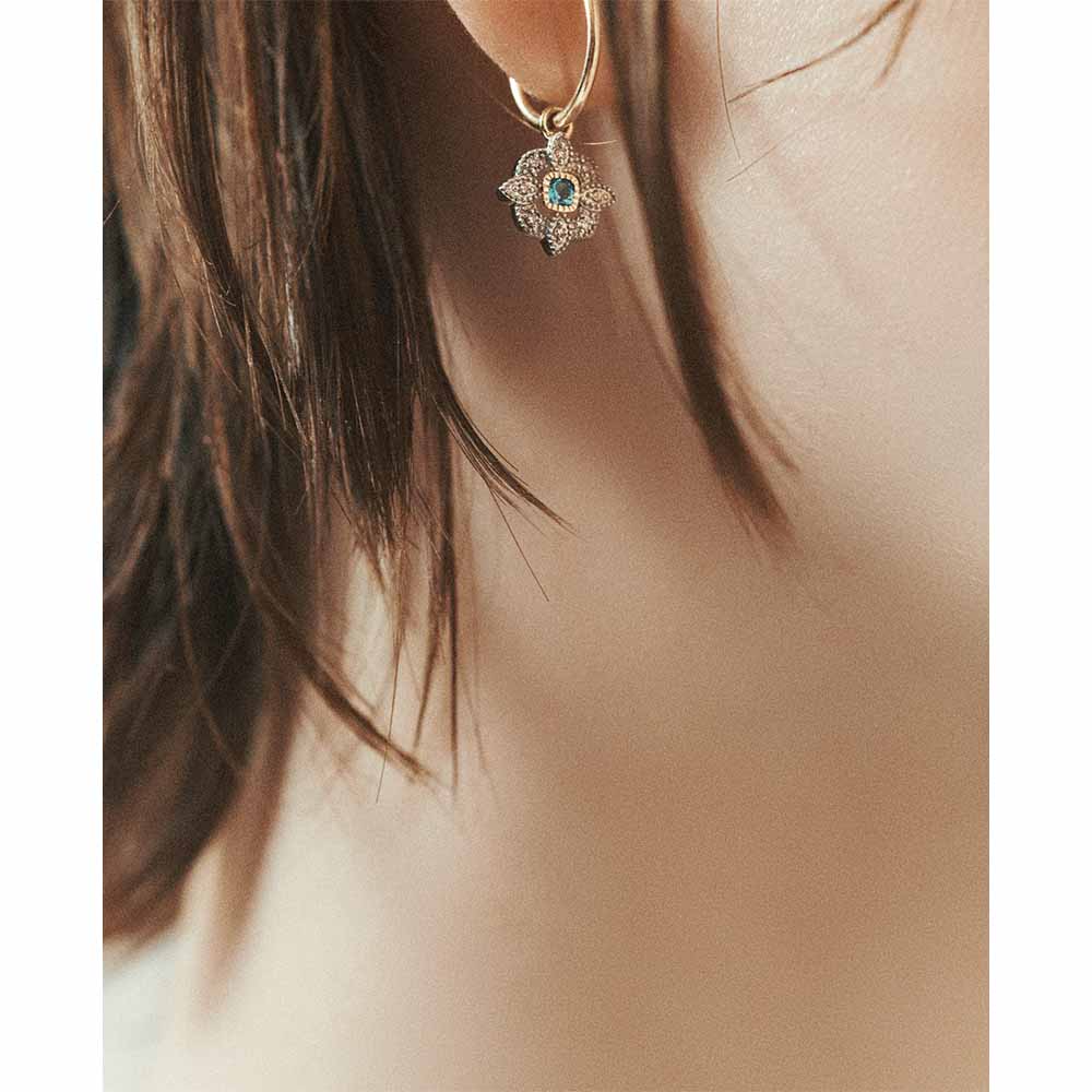 Pascale Monvoisin's Bettina Single Earring is a captivating blend of luxury and uniqueness. Crafted in 9-carat yellow gold and Silver 925, adorned with diamonds and a mesmerizing London Blue Topaz. This piece harmoniously fuses modern design with timeless elegance, creating a sophisticated accessory that stands out with its vibrant gemstone accent.