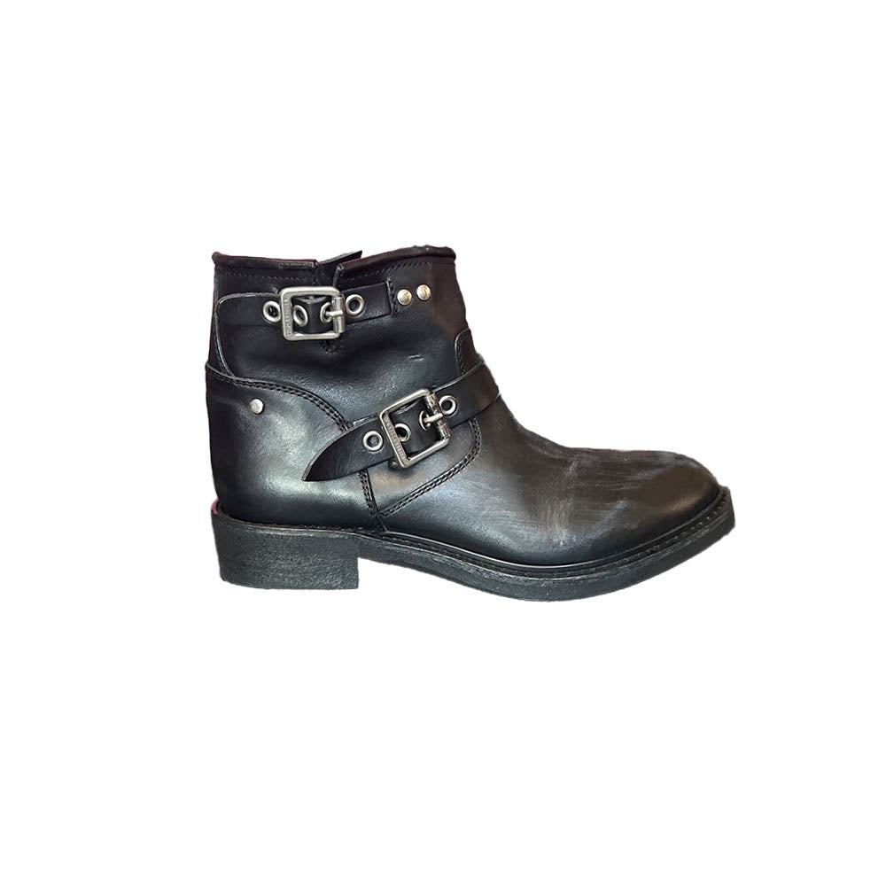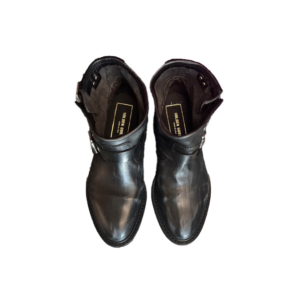 Made for walking and beyond: Biker Boots from Golden Goose take a classic on-the-road design and translate it into a closet staple: the road awaits. In this low version, this model features a black leather upper accentuated by straps with buckle and studs in galvanic silver-colored metal.