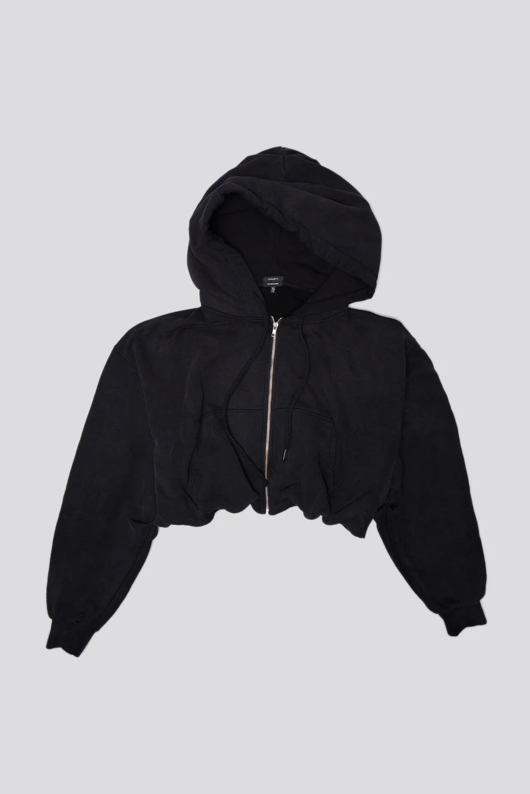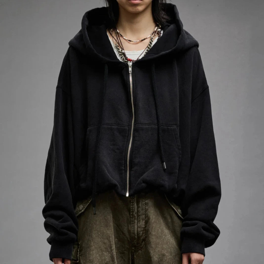 This R13 oversized zip-up hoodie is made of cotton fleece and has a gathered hem that slightly inflates the silhouette.