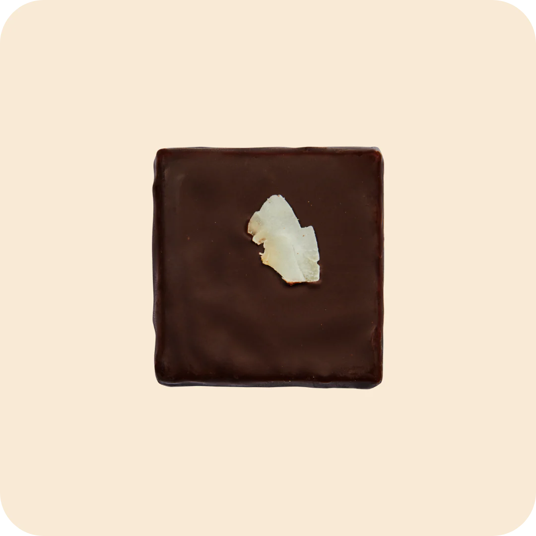 Four nut butter chocolates in a beautiful mini box. Each box comes with an Intention Card to write your intention of the day. Healthy nut butter squares infused with botanicals, fruit, and flowers and dipped in raw dark chocolate. Our chocolates have only 2g of sugar or less per chocolate, from dates. They are keto-friendly and have minimal effect on blood sugar levels. Gluten-free. Vegan. Organic. 100% natural. Made in France. Award-winning.
