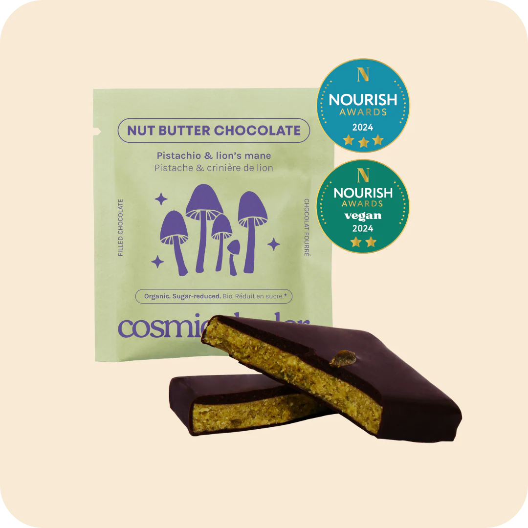 Our nut butter chocolates have, on average, 80% less sugar content than your regular chocolate bar. We do not compensate by using fake or synthetic alcohol sugars or cheap industrial tricks that are worse for you than actual sugar. We only use a sprinkling of dates (2 g or less per chocolate) for a hint of natural sweetness that's low GI and without the sugar spikes. We also use the highest quality organic ingredients and stick to short ingredient lists: they are simply natural nut purées, infused with herbs, plants, flowers, and fruits, and enrobed in artisanal chocolate. Our single-origin chocolate is made bean-to-bar in France and sourced ethically from a cooperative in Ecuador. Our supply is completely traceable. Nut butter and dark cacao form a combination naturally rich in protein, magnesium, polyphenols, and healthy fats.