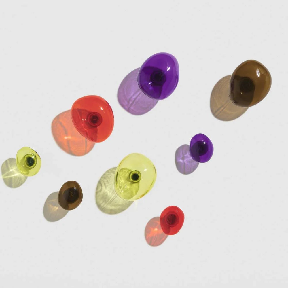 Designed to mimic the lightness of soap bubbles, these playful coat hooks by Vaulot-Dy'vre are crafted from thick tinted glass. Available in two sizes, they add a pop of color and transparency to your space while staying securely in place with a strong single-anchor fixing system.
