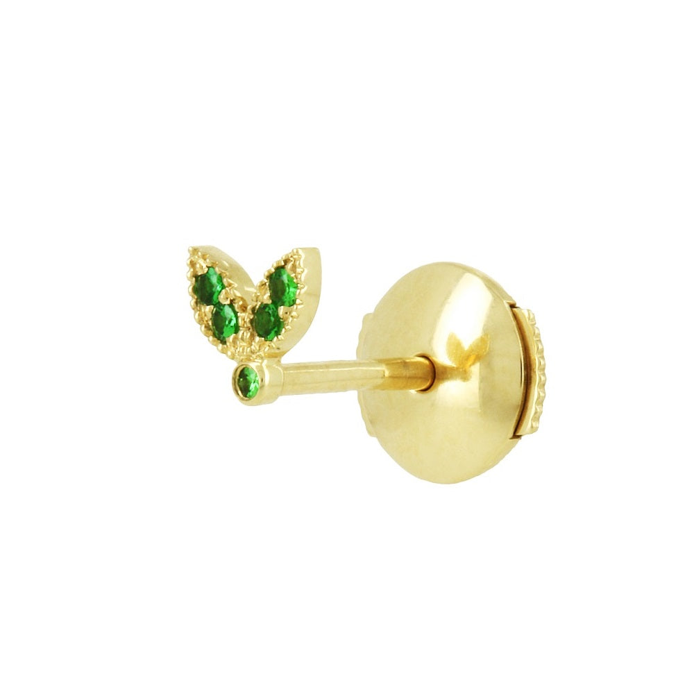 Bunny Ear Earring by Yvonne Leon in 18k yellow gold shaped like a bunny ear and elegantly designed with emeralds.