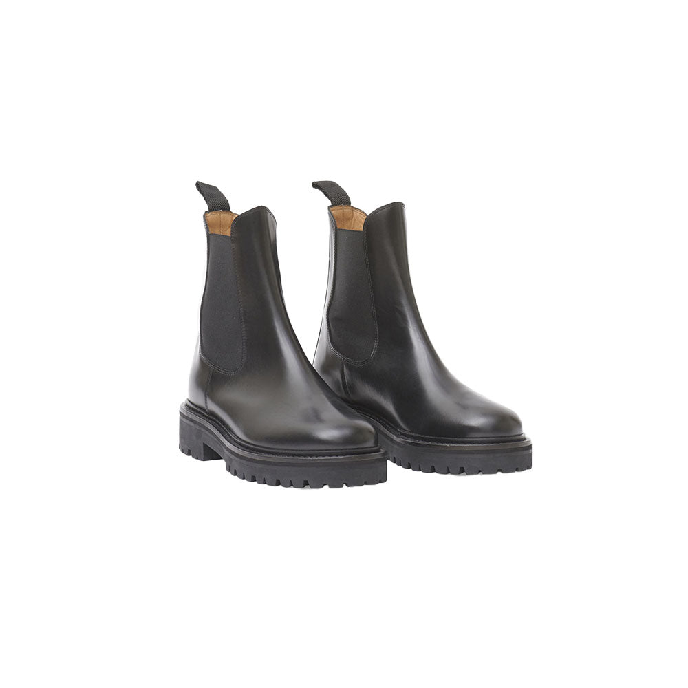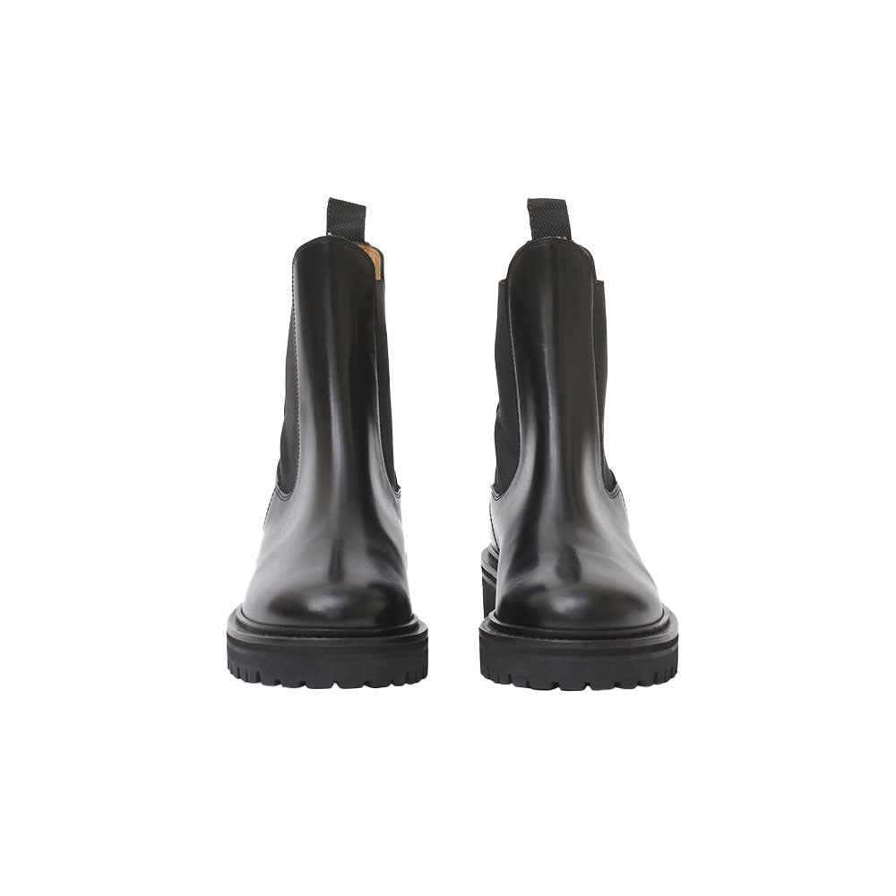 The Castay boots from Isabel Marant are a striking pair of black calf leather chunky boots, boasting a classic round toe and a sturdy thick rubber sole. Crafted entirely from 100% calfskin leather, they offer a perfect blend of style, durability, and quality craftsmanship.
