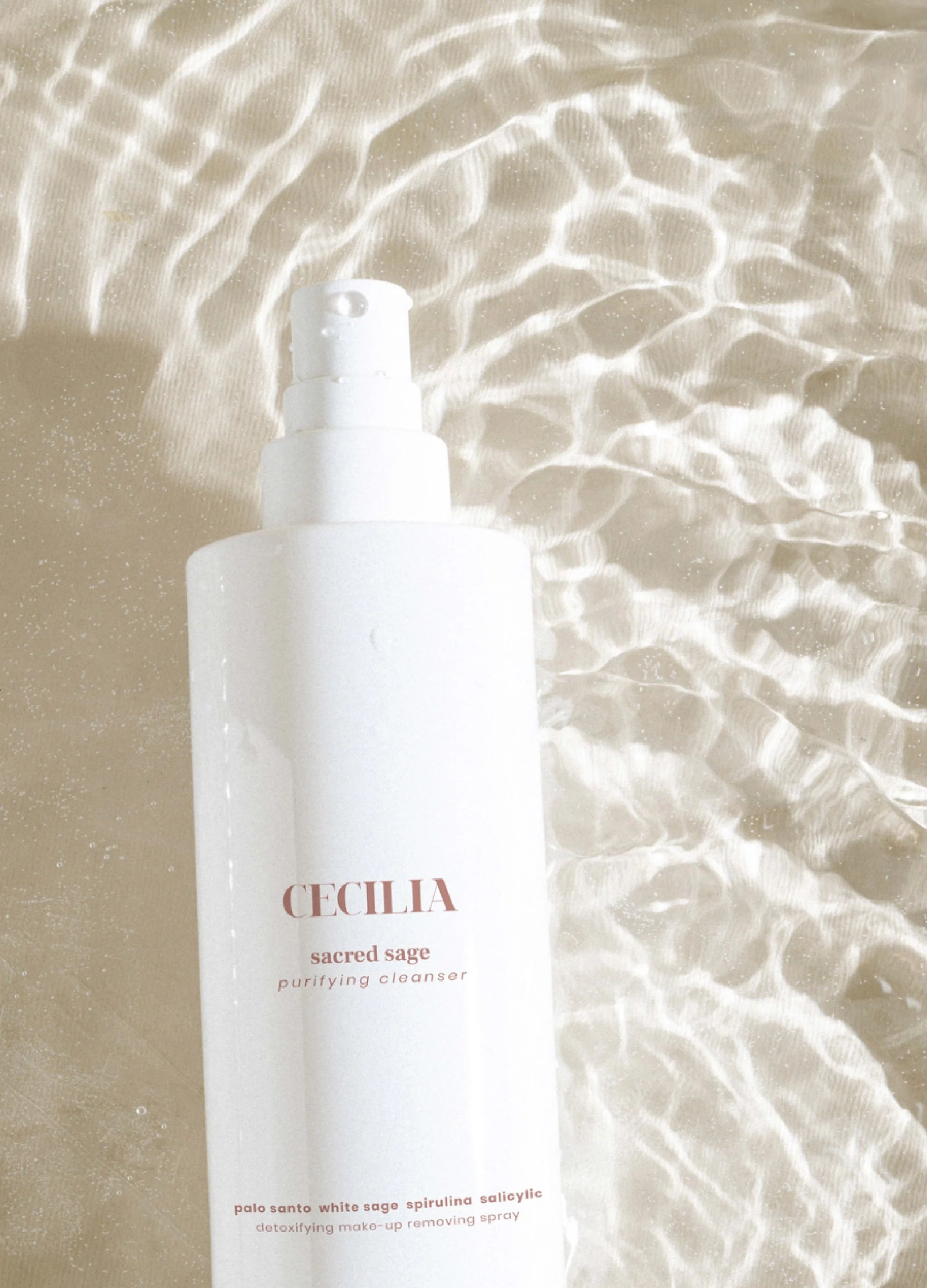 The Sacred Sage Purifying Cleanser is a weightless liquid cleanser inspired by purification rituals, formulated with sacred botanicals like White Sage and Palo Santo floral waters for purifying and calming benefits, alongside Artichoke Extract and Salicylic Acid to detoxify and gently refine pores and regulate sebum without stripping the skin. Enhanced with a deeply hydrating complex of Birch Sap and Maple Sap, soothing Rose & Blue Chamomile Floral Waters, and antioxidant Blue Spirulina, this cleanser effectively removes makeup and impurities, calms redness, and rebalances the skin, making it ideal for sensitive or blemish-prone complexions.