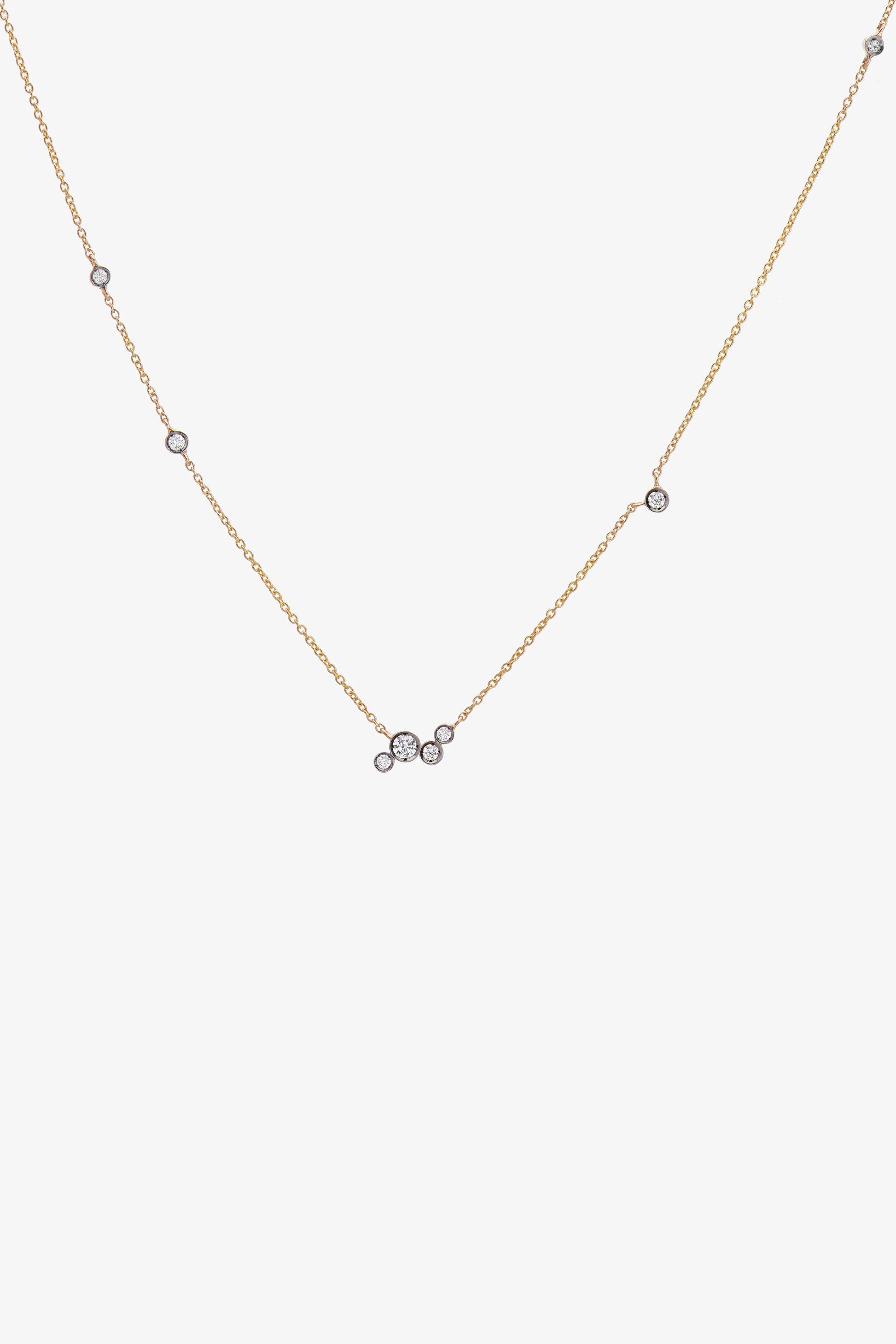 Crafted with unparalleled artistry and attention to detail, this necklace captures the essence of the dazzling night skies of the cyclades. Radiating with ethereal beauty, the aurora necklace is fashioned from exquisite 18k yellow gold and adorned with 0.11 carats of glistening diamonds, reminiscent of twinkling stars against the night sky. With its celestial allure and timeless elegance, the aurora necklace is destined to captivate and inspire.