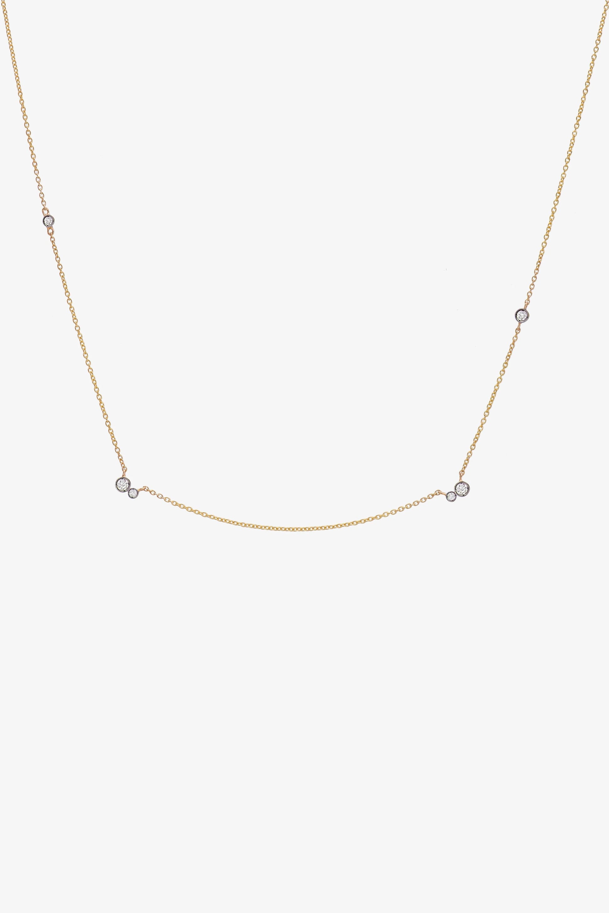 This stunning necklace captures the essence of cosmic allure with its delicate design and celestial motifs. Handcrafted from luxurious 18k yellow gold and adorned with 0.08 carats of shimmering diamonds, the nebula necklace is a captivating masterpiece that adds a touch of celestial magic to any ensemble.