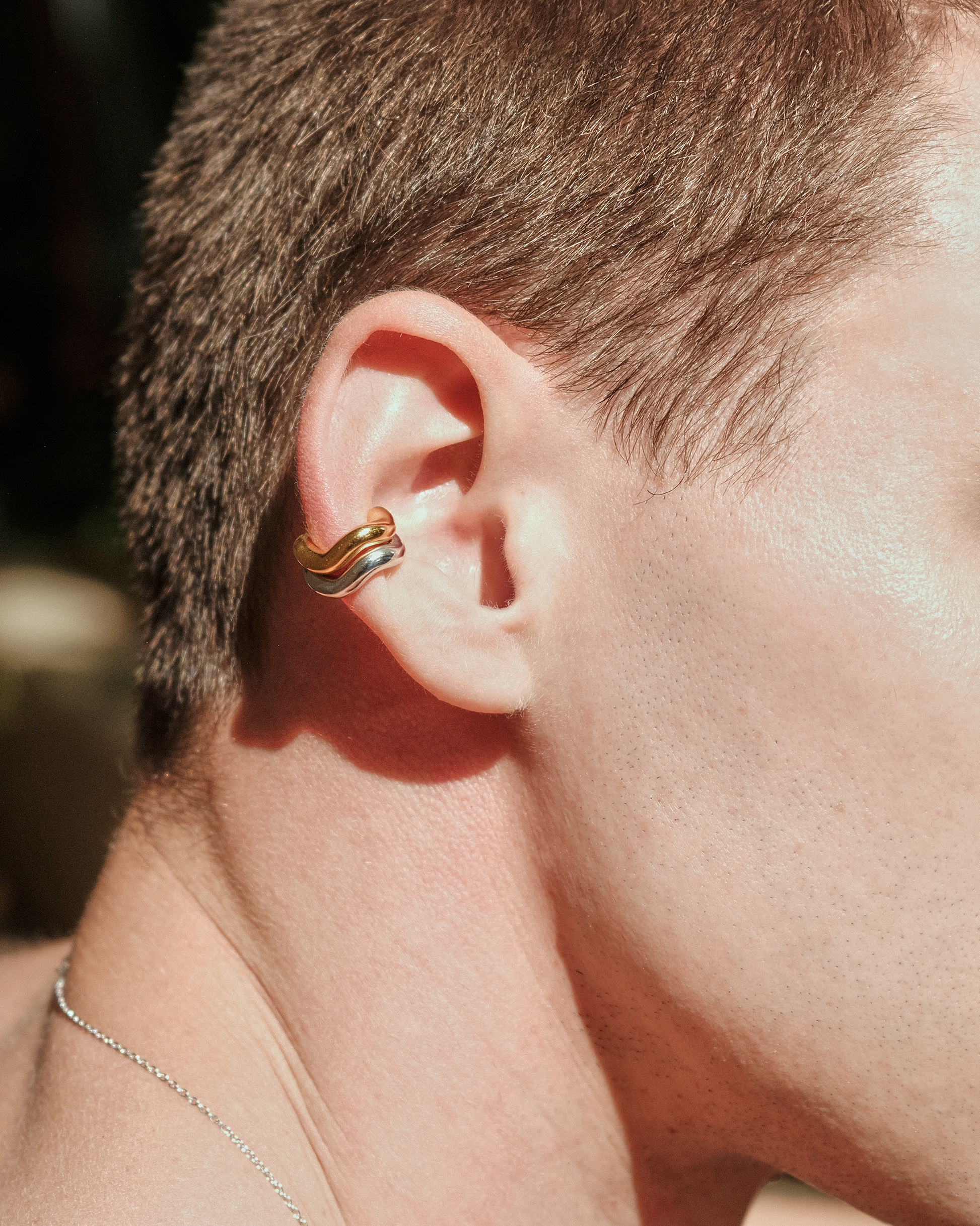 The Wave Cuff Silver by Charlotte Chesnais is a sculptural ear cuff that elegantly wraps around the ear, creating a fluid silhouette. Crafted from 925 sterling silver and plated with rhodium, this piece offers a polished finish. Sold as a single earring, it's designed to be worn on the left or right ear.
