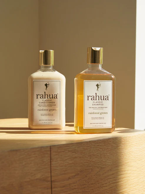 A luxe, concentrated conditioner that deeply nourishes without weighing hair down. Powered by omega‑9-rich Rahua oil and jojoba for strengthening and shine, aloe and quinoa for hydration and repair, and palo santo for an earthy, purifying aroma. This woodsy, creamy formula detangles, smooths frizz and supports a healthy scalp.