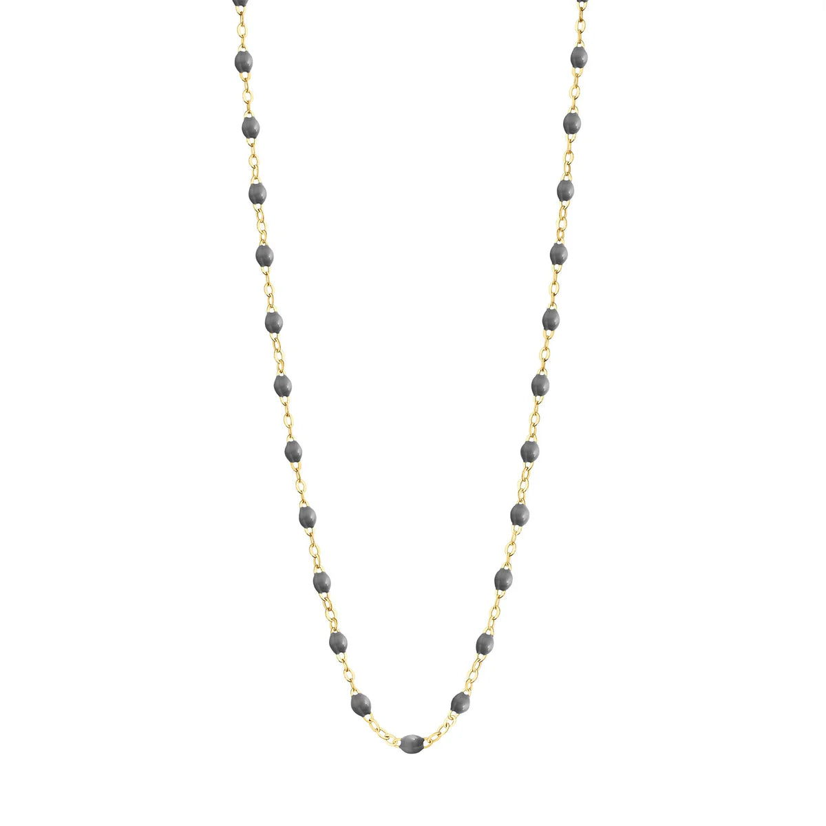 The Classic Gigi necklace by Gigi Clozeau features 18k yellow gold and striking grey resin beads. Understated yet refined, it’s the ideal everyday piece—subtle, elegant, and effortlessly cool.