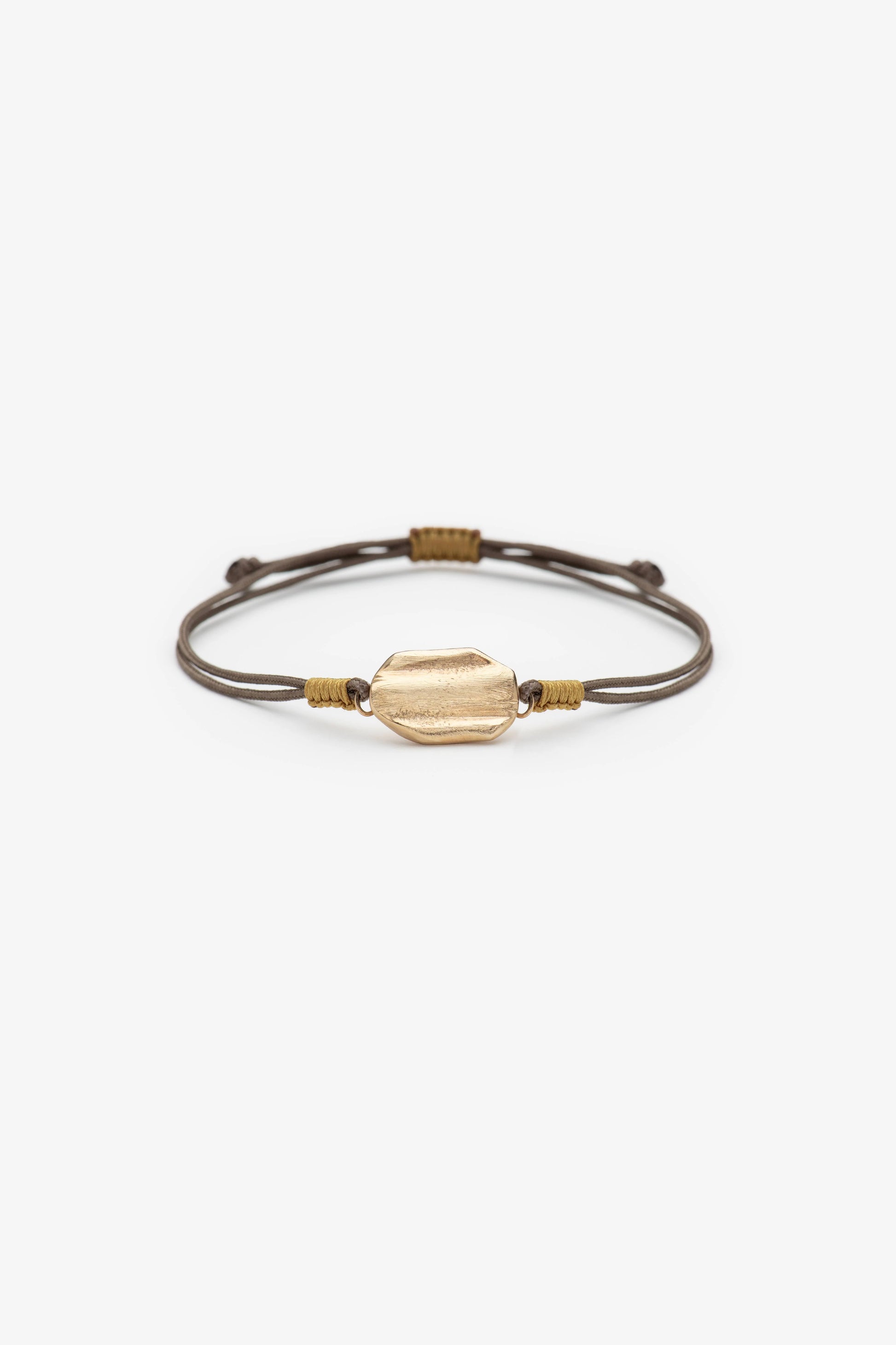 A collection that ties together fragments of the past in a contemporary ancient city. The gold elements, looking like fragments of a marble column, adorn a custom-braided cotton cord. Every immortelle piece, its gold motifs, and cords, is handmade and pays homage to the passed-on craft practices and a heritage of excellence.