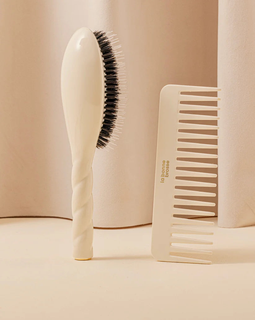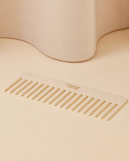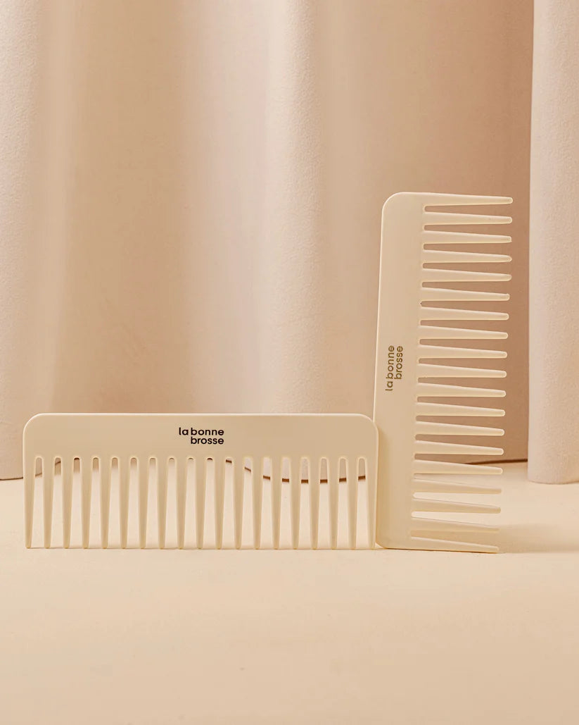 Made in the Jura region of France by a century-old company, this hair comb combines advanced technology and traditional expertise. Its durable yet soft material gives it a velvety feel, while its wide, precise teeth allow for gentle detangling. This detangling comb can be used on dry hair for daily styling and on wet hair, in the shower or after shampooing, to detangle without damaging the hair fiber.