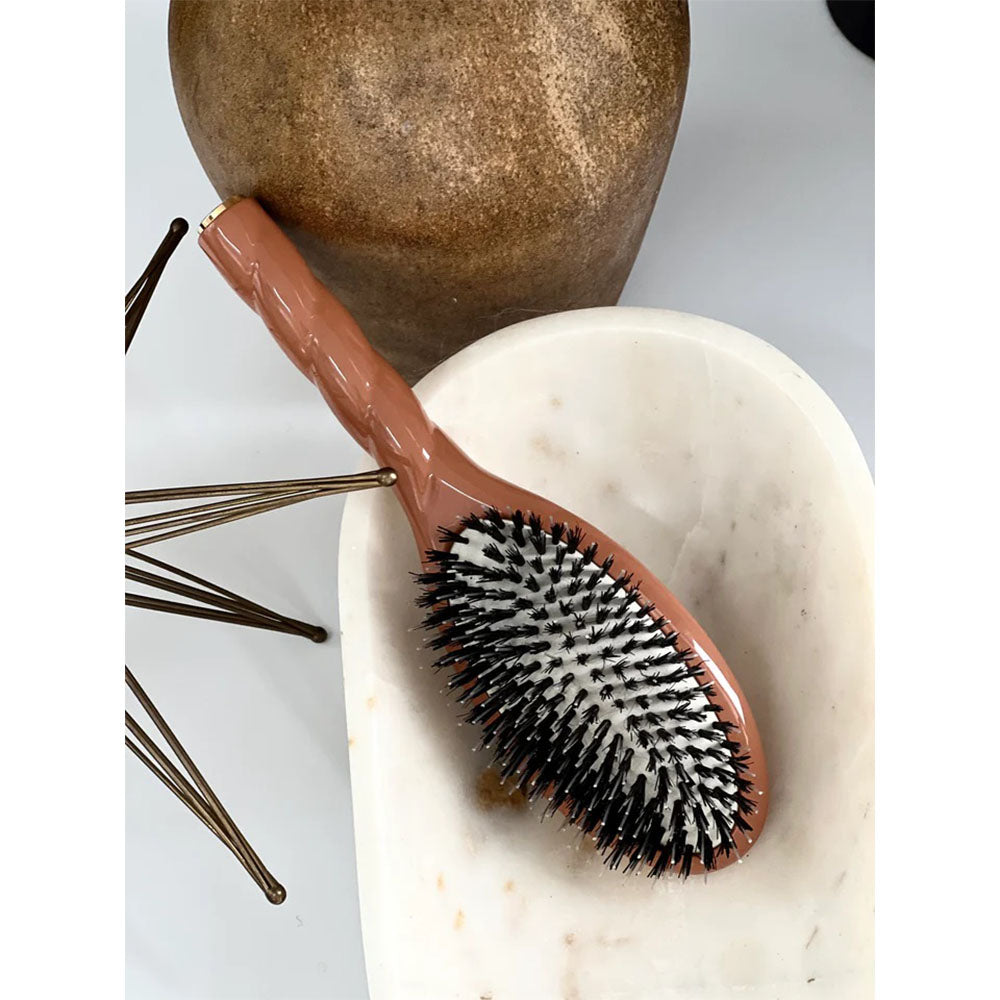 - The boar bristles that we have chosen for this hair brush have been carefully selected to be the most keratin-rich. The soft yet strong nylon fibers allow for thorough detangling and stimulate blood microcirculation for a unique and routine brushing experience.
