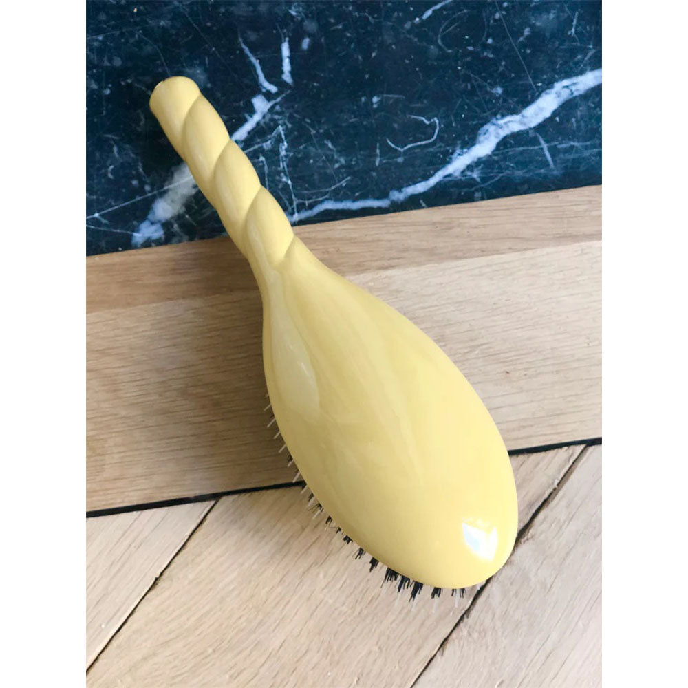 The round tips of the synthetic fibers, combined with the soft rubber base of the Yellow Essential, deeply massage your scalp. The result: the scalp's microcirculation is reactivated, promoting hair growth. A must-have for daily brushing, this perfect companion revitalizes your hair, leaving it stronger and shinier without any effort!