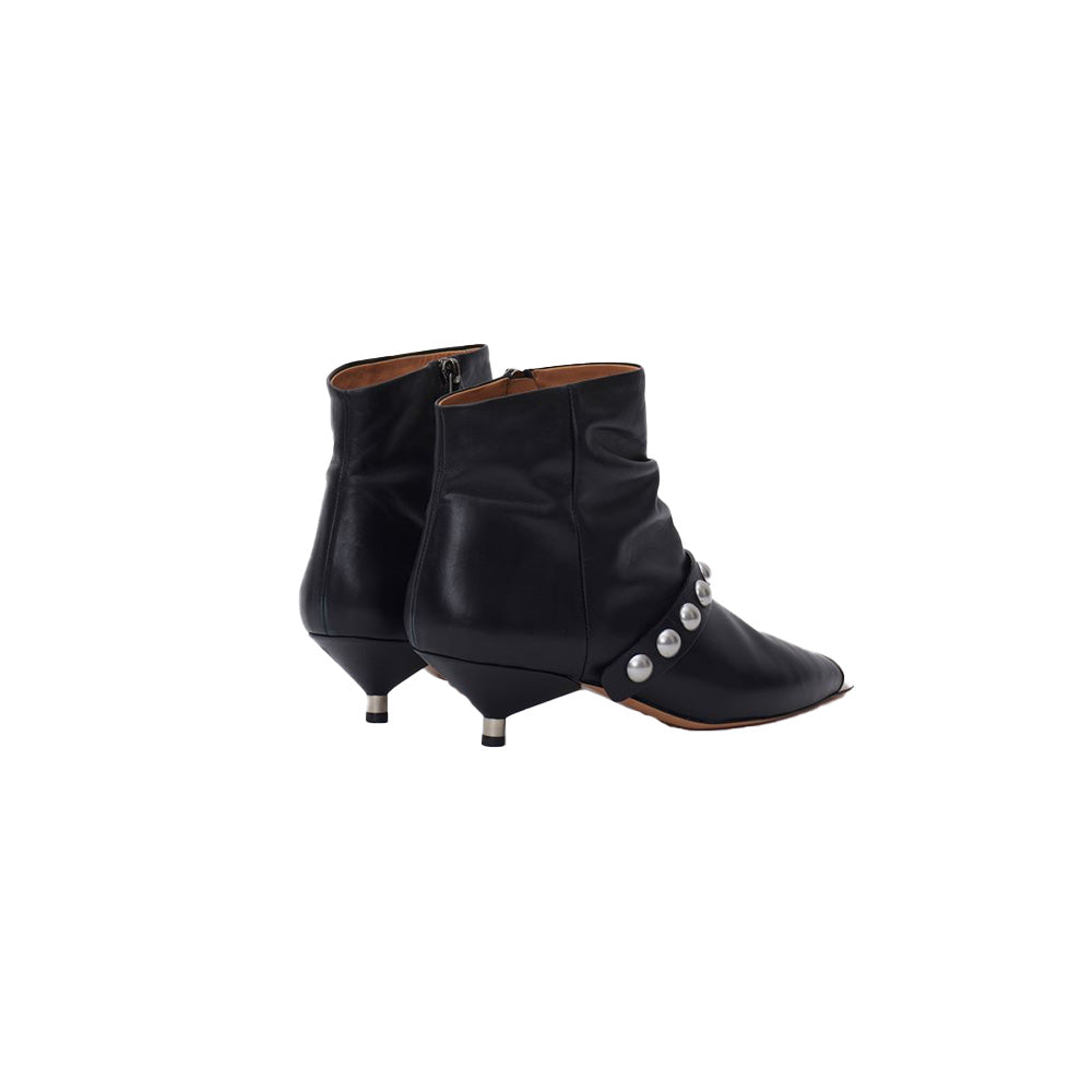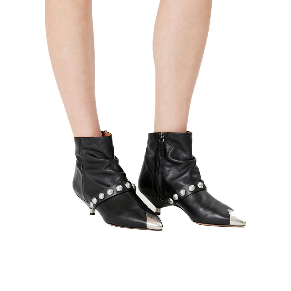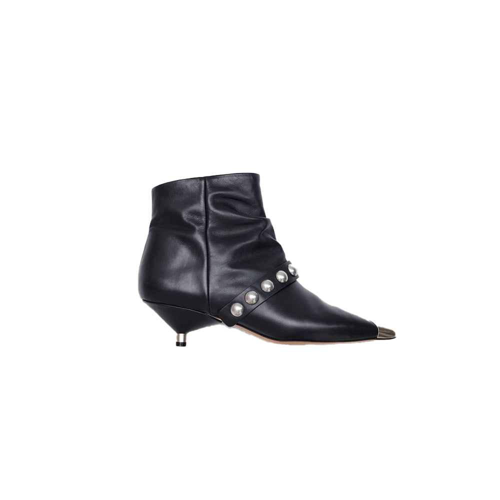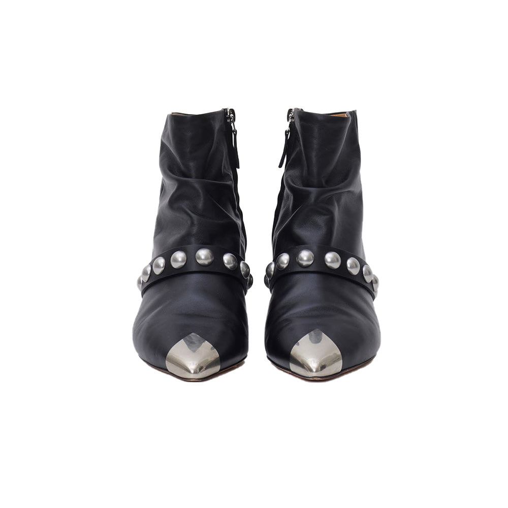 Donatee Boots from Isabel Marant is calfskin leather ankle boots with pointed toe. It also has silver studs.