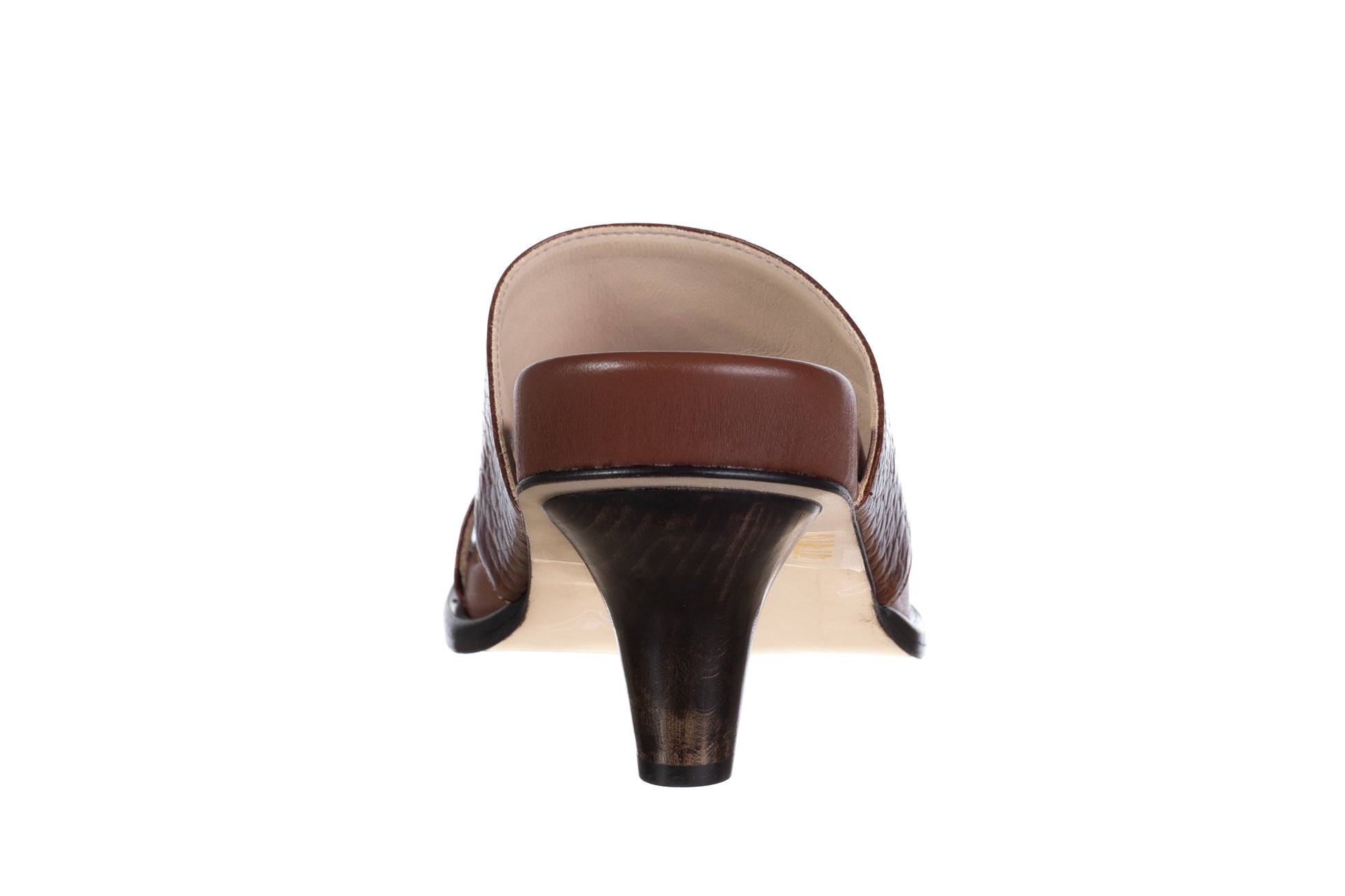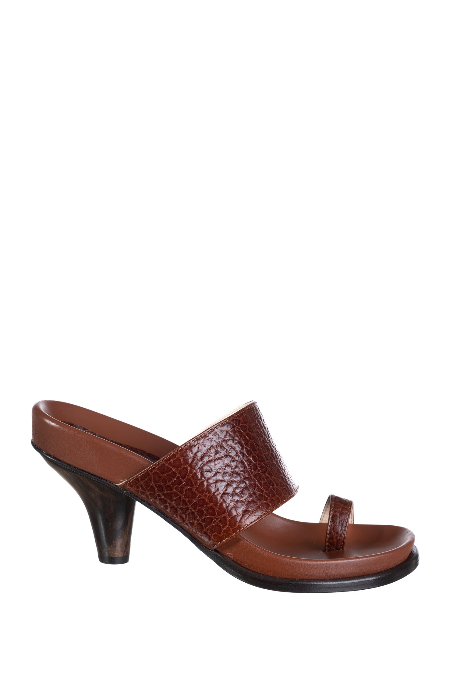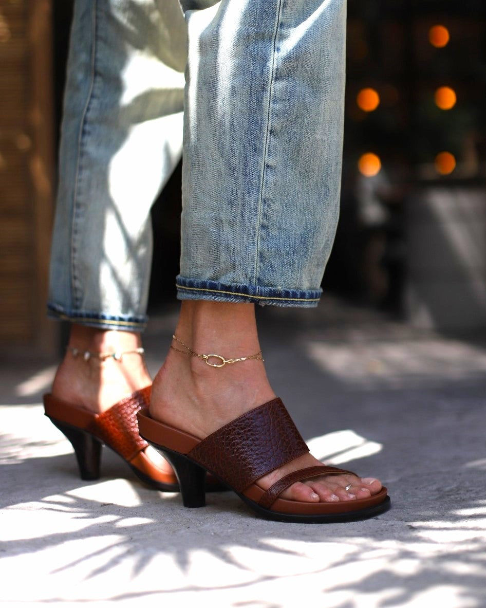 Elegant and comfortable, Ellen Verbeek's Dongo sandals features a fussbet design and a wooden kitten heel.