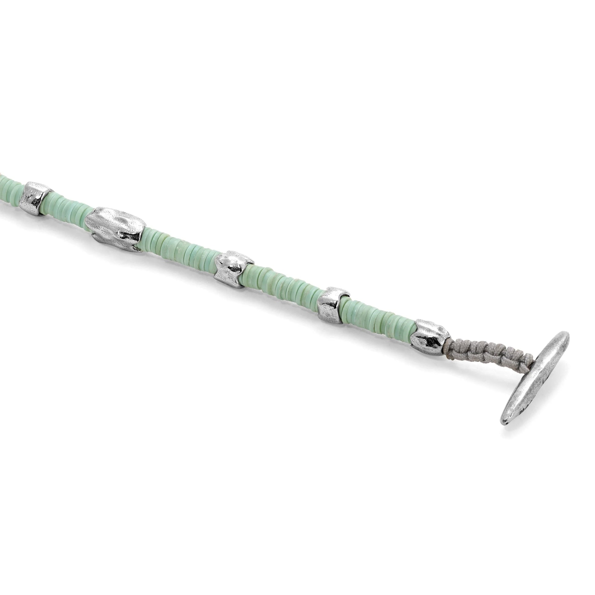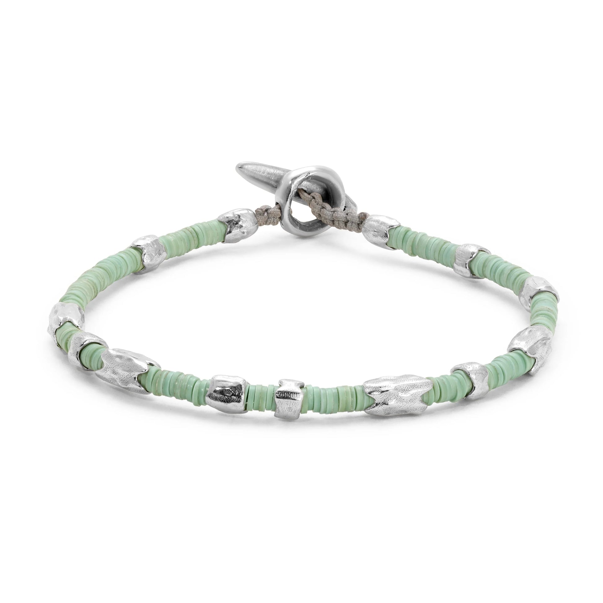 Expertly crafted with 925 sterling silver and adorned with beautiful African vinyl beads, the Dryp Bracelet in Mint Green adds a touch of elegance to any outfit.