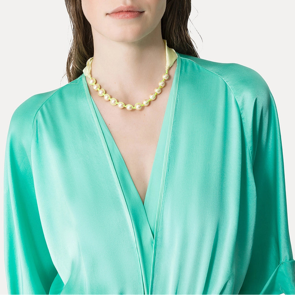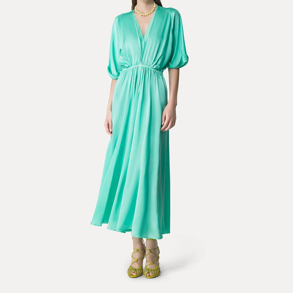 This dress from forte forte is made from silk and features a v-neck line, half -sleeves, and an elastic waistline detail.