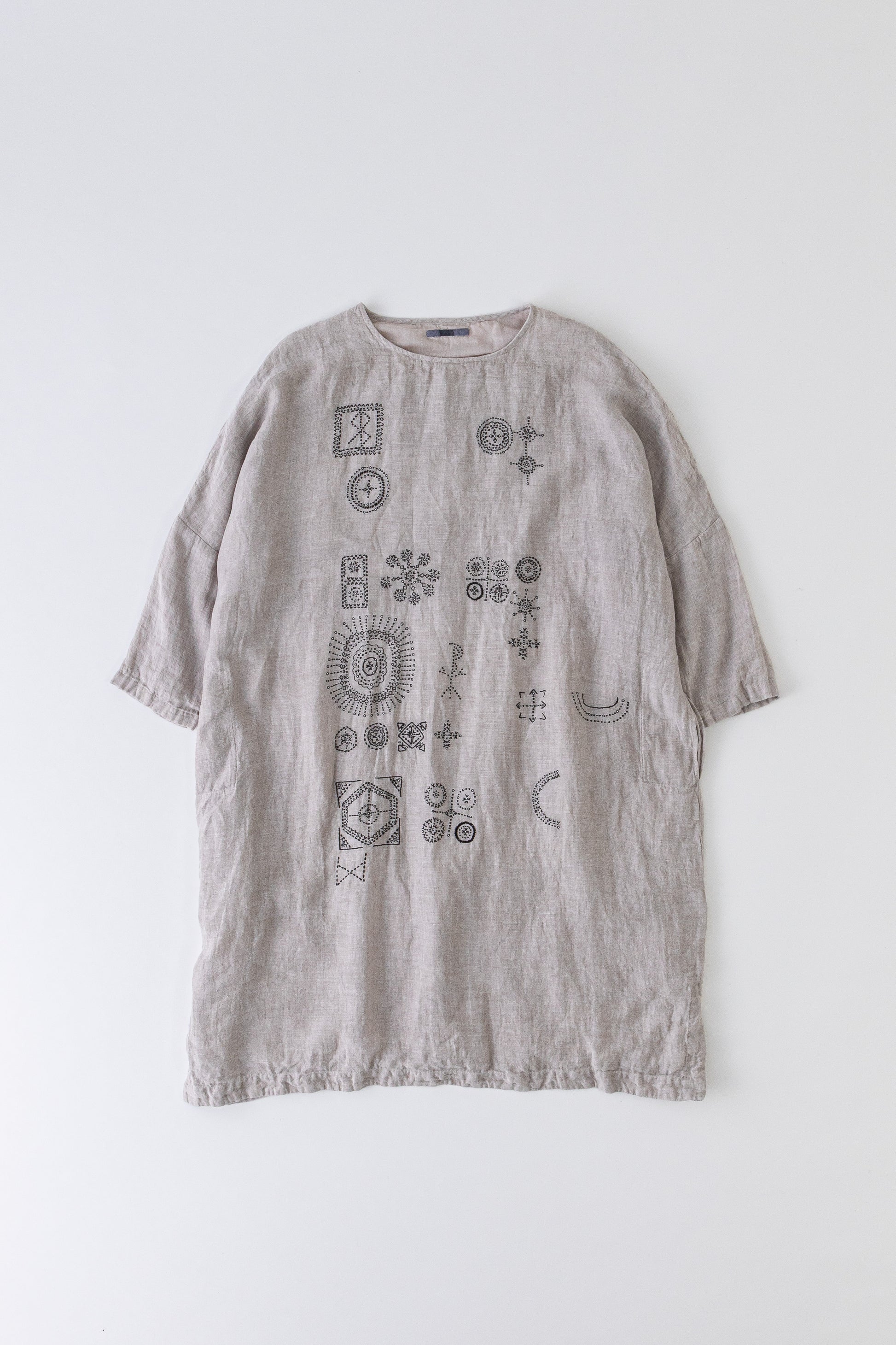 Effortlessly relaxed, this oversized dress is crafted from 100% linen with a soft cotton lining. it has an embroidered design at the front.