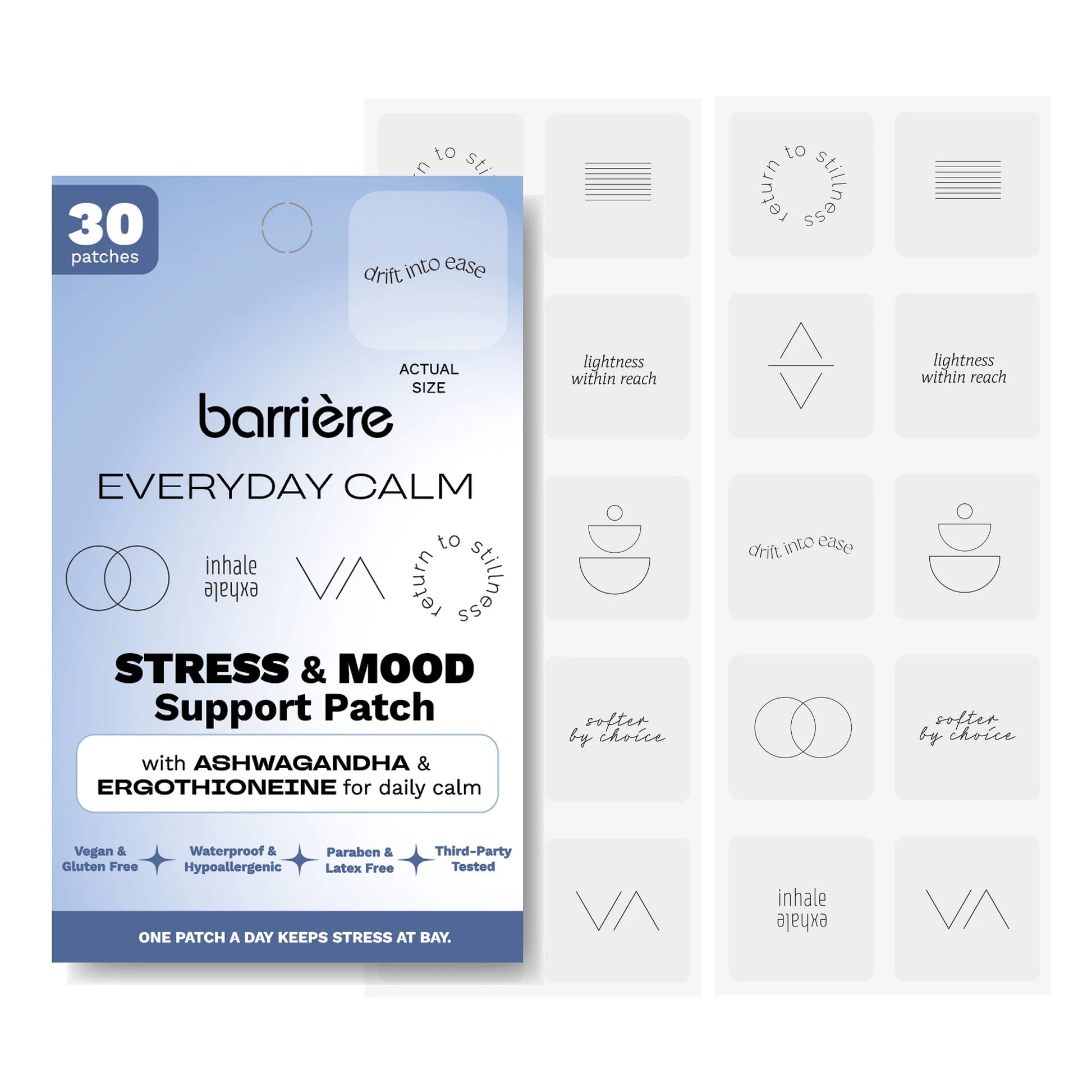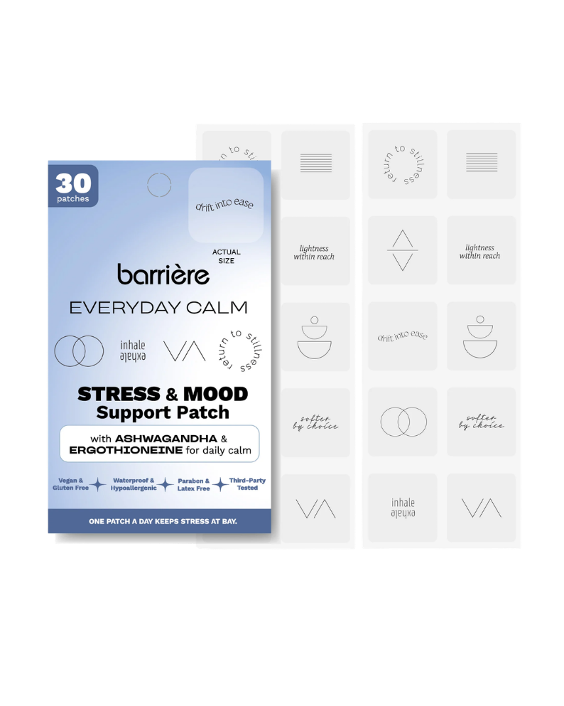 The Everyday Calm Patch is an ultra‑thin, skin‑friendly transdermal patch that delivers 7 mg of ashwagandha and 2 mg of ergothioneine (EGT) per patch for steady, plant‑based stress support; its flexible adhesive sits discreetly for all‑day wear, offering gentle mood balance, healthy cortisol support, and antioxidant protection without pills or gummies, and the clean, vegan, latex‑free formula is third‑party tested for quality—lightweight and travel‑ready, it fits seamlessly into busy routines as a natural calming patch, stress relief patch, or wellness patch for anxiety