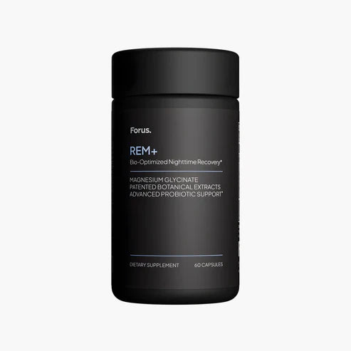 Forus REM+ is a restorative nighttime supplement designed to optimize sleep quality, physical recovery, and the gut-brain axis. It is part of the "Forus Protocol" (often paired with BPC Gold for daytime repair) but functions as a standalone formula to calm the nervous system before bed. The supplement combines highly absorbable minerals, clinically studied botanical extracts, and a specific probiotic strain to support deep sleep cycles and physiological regeneration during the night.