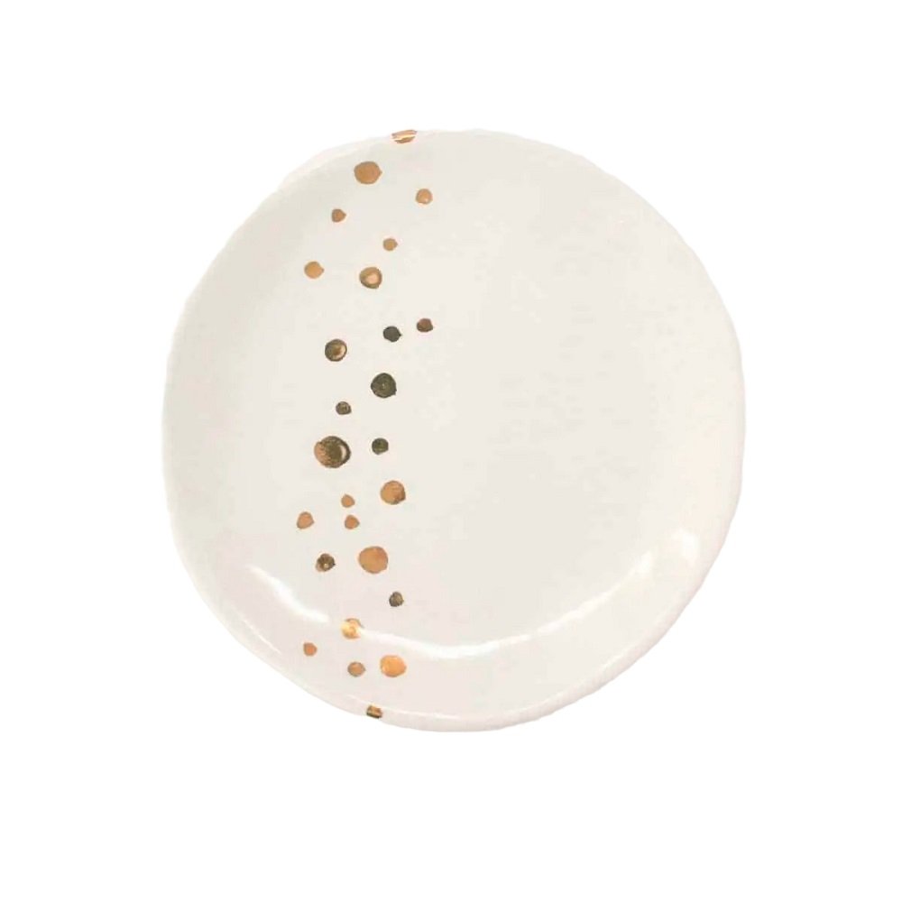 Stoneware Comptoir 102 dots design hand made with gold lustre finish. Elegantly pair with Comptoir 102 cups collection.