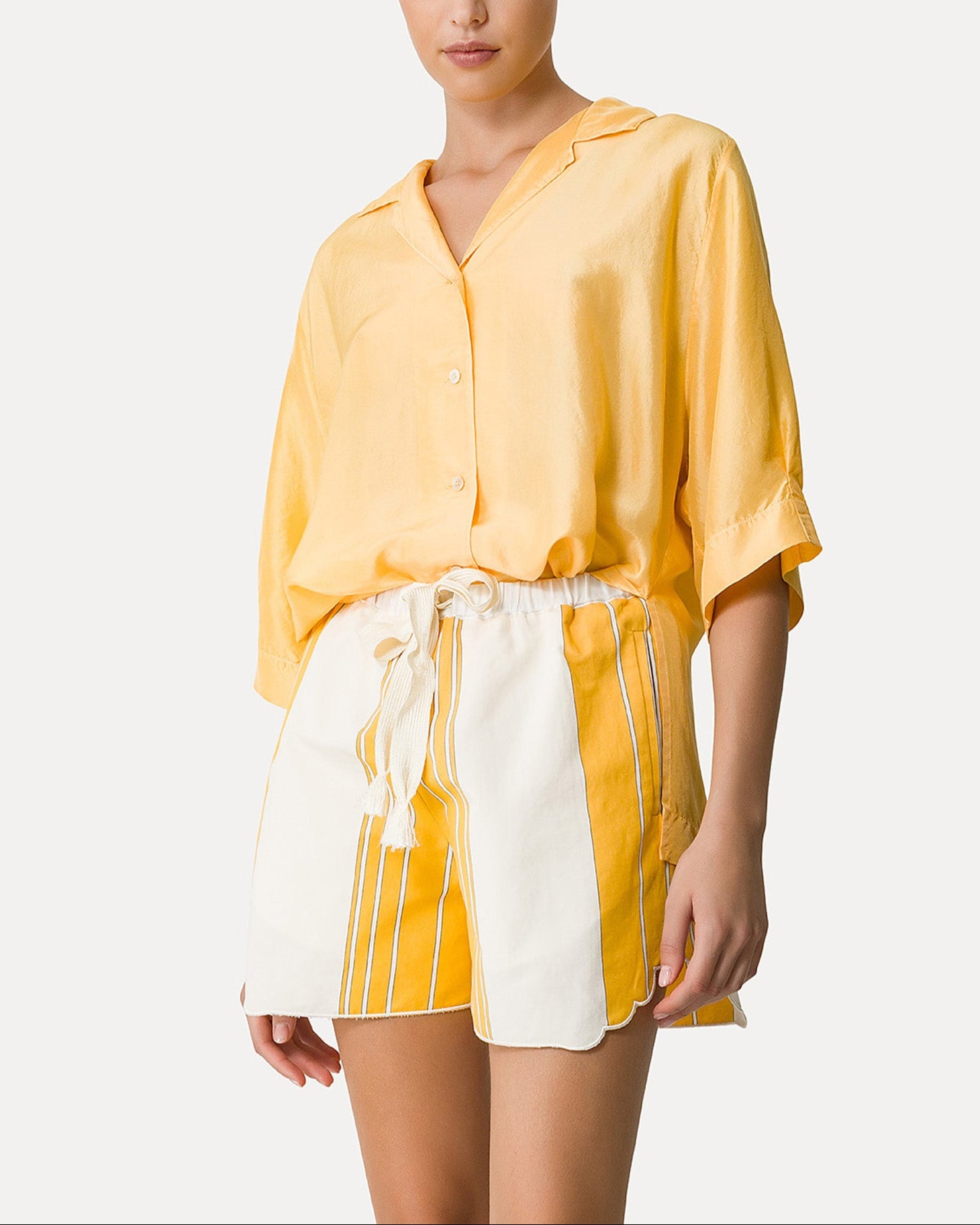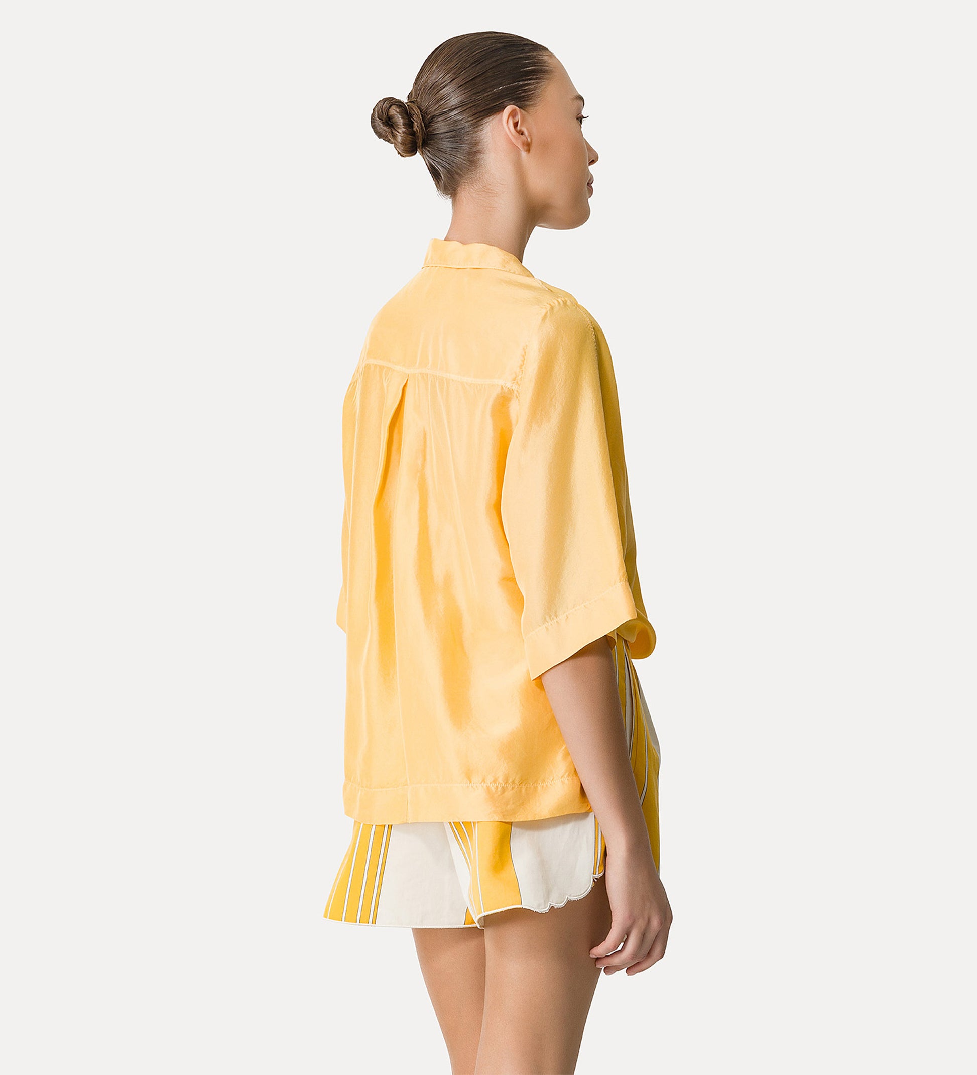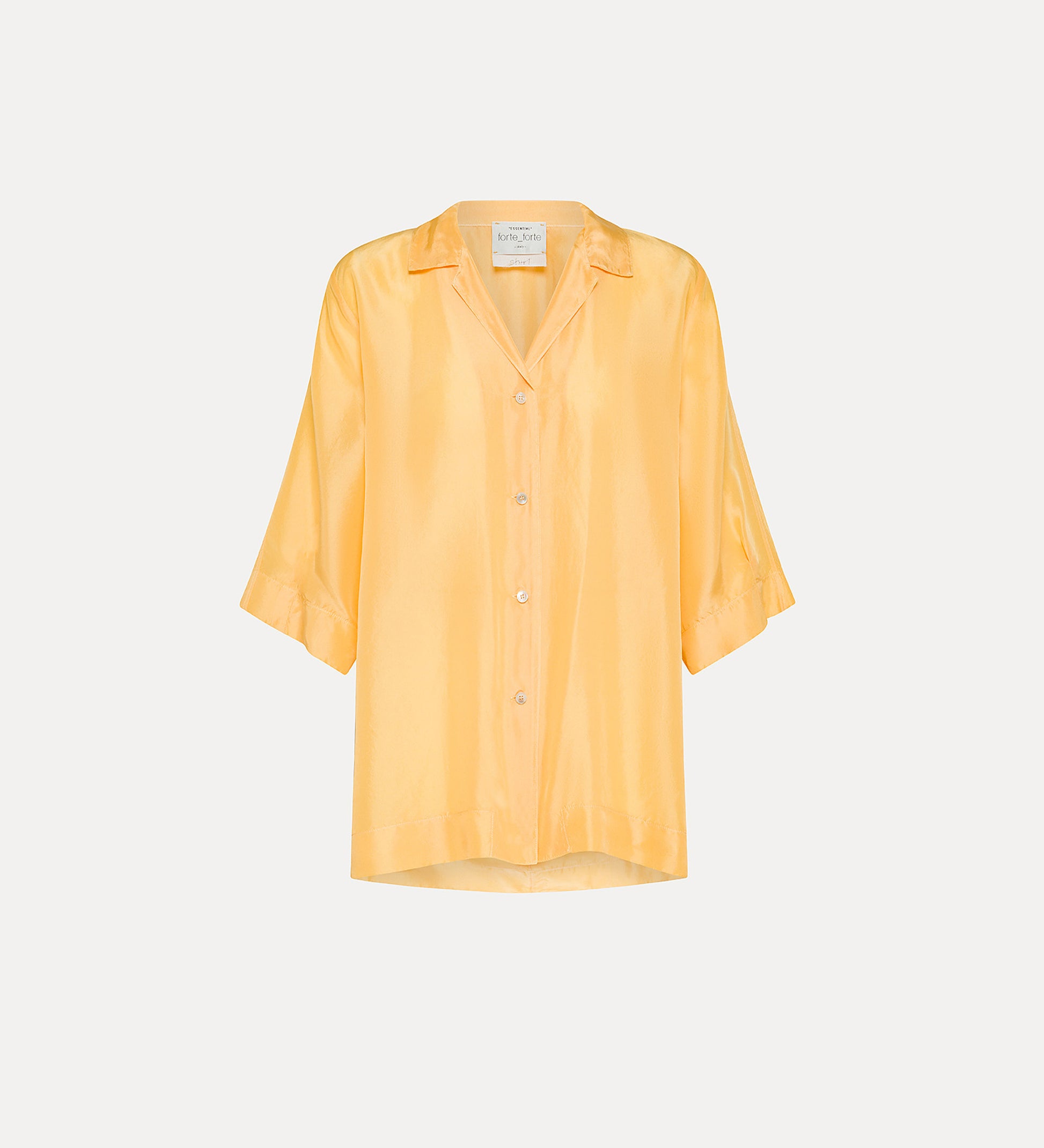 Crisp yet fluid, this short-sleeve shirt in habotai silk is a refined staple for sunlit days. Whether layered under a loose jacket or worn with a textured knit, its clean lines and subtle sheen offer quiet sophistication for any occasion.