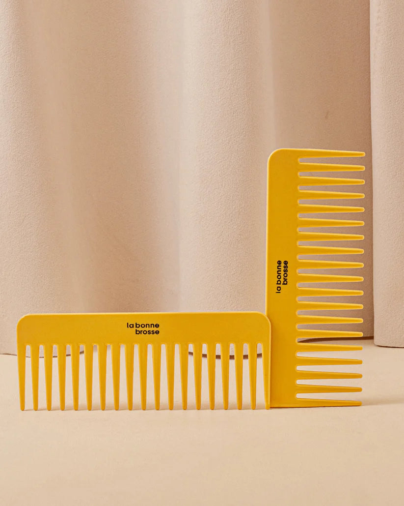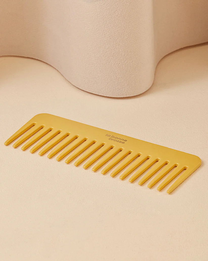 Made entirely of cellulose acetate, this handcrafted detangling comb works thoroughly through all hair types, whether fine or thick, straight or curly, short or long.