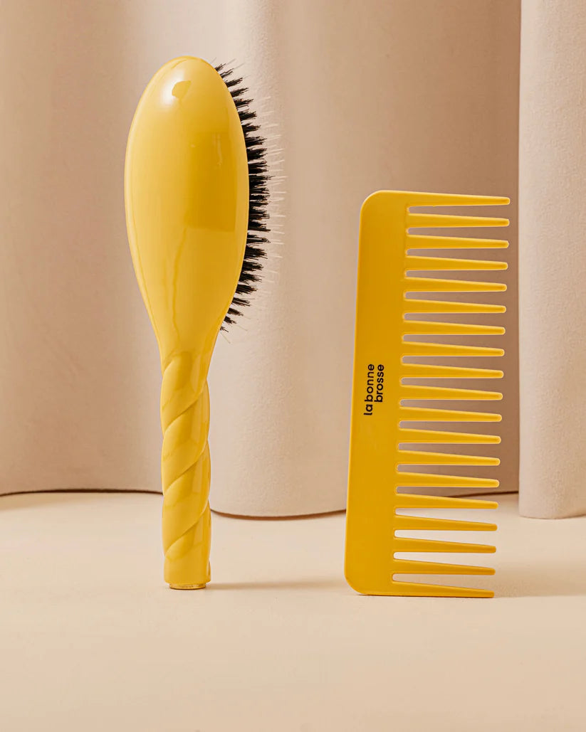 Made in the Jura region of France by a century-old company, this hair comb combines advanced technology and traditional expertise. Its durable yet soft material gives it a velvety feel, while its wide, precise teeth allow for gentle detangling. This detangling comb can be used on dry hair for daily styling and on wet hair, in the shower or after shampooing, to detangle without damaging the hair fiber.