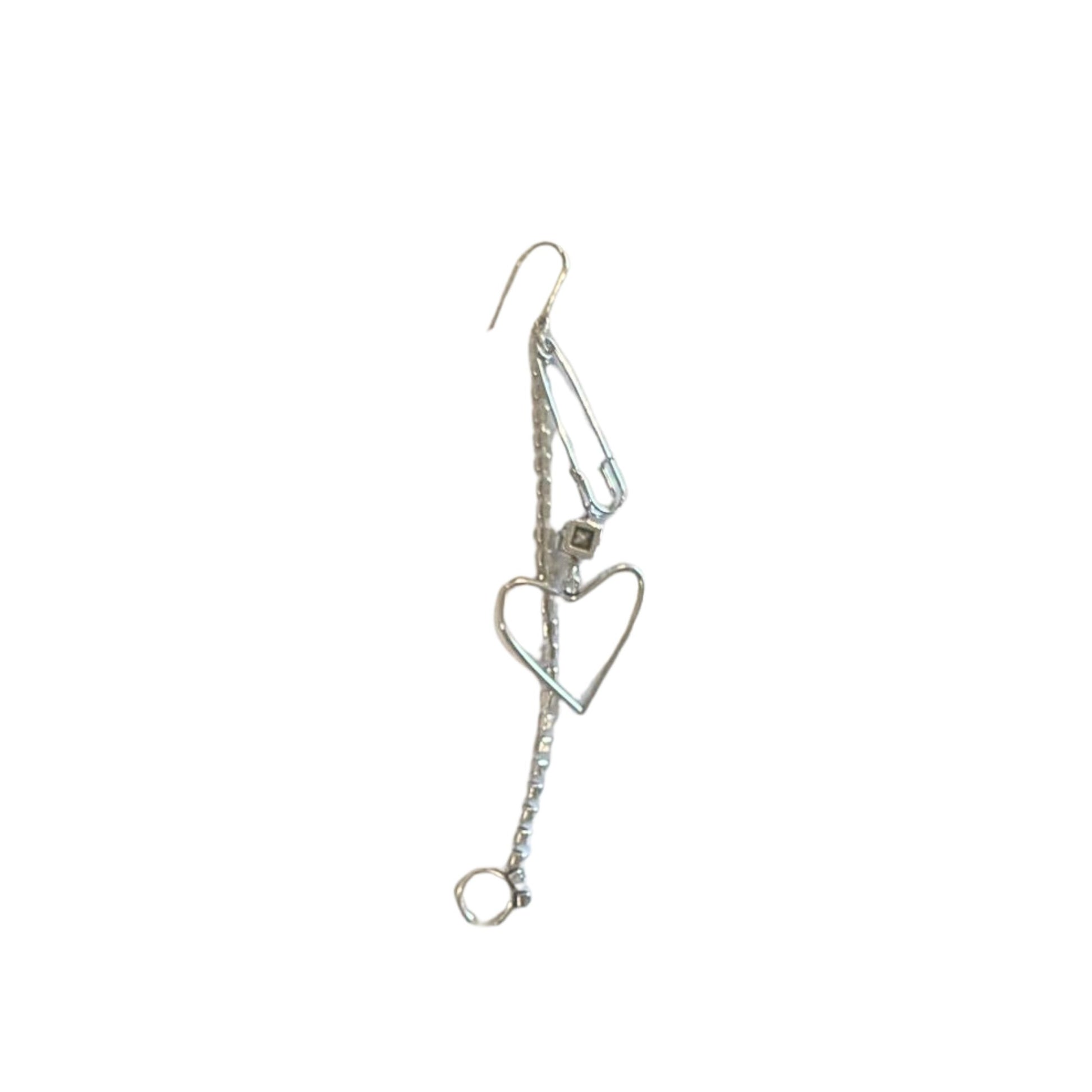 These Isabel Marant hook earrings combine a delicate heart and safety pin charm with a sleek cuff design for a unique, contemporary look. Crafted in silver, they offer a subtle yet distinctive accessory that complements both casual and formal styles. The blend of symbolic motifs adds a touch of edgy sophistication to your ensemble.