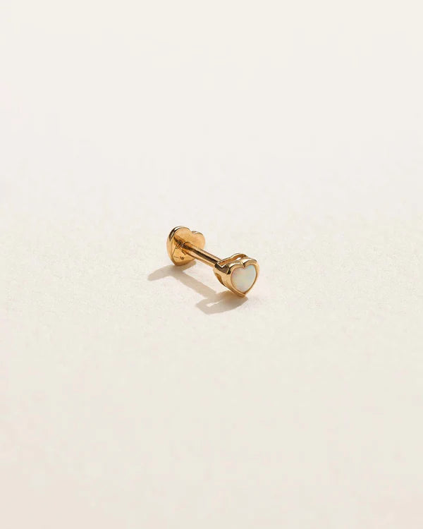Heart-shaped stud with a dreamy opal inlay from Pamela Love. An understated everyday option perfect for the helix, lobe, tragus, lobe piercings, and to be worn on its own or as a pair. Sold as a single.