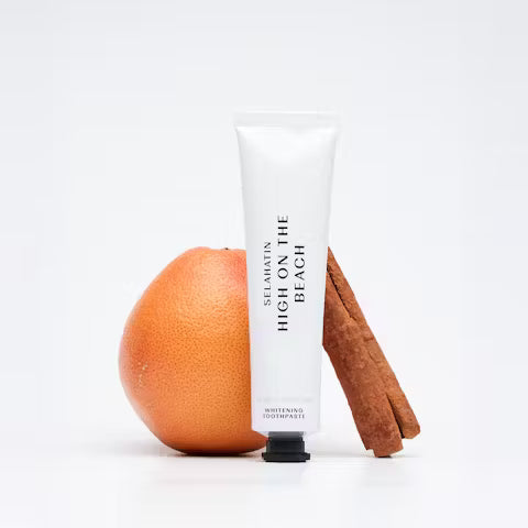 Selahatin's High On The Beach Toothpaste features a refreshing blend of Grapefruit Oil, Cassia Vera Cinnamon & Peppermint. It's also packed with 1450 ppm fluoride for strong teeth and housed in recyclable aluminium tubes. Vegan, cruelty-free, and dermatologically tested, this toothpaste is trusted by The Swedish Dental Association and made in Switzerland.
