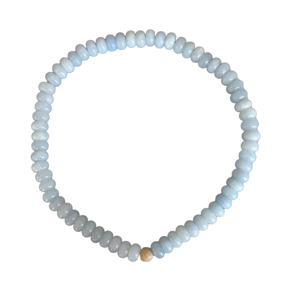 One-size-fits-all Necklace crafted on a durable elastic thread, featuring semi-precious stones and 18k gold-plated bead. Can also be worn as a double wrap bracelet.