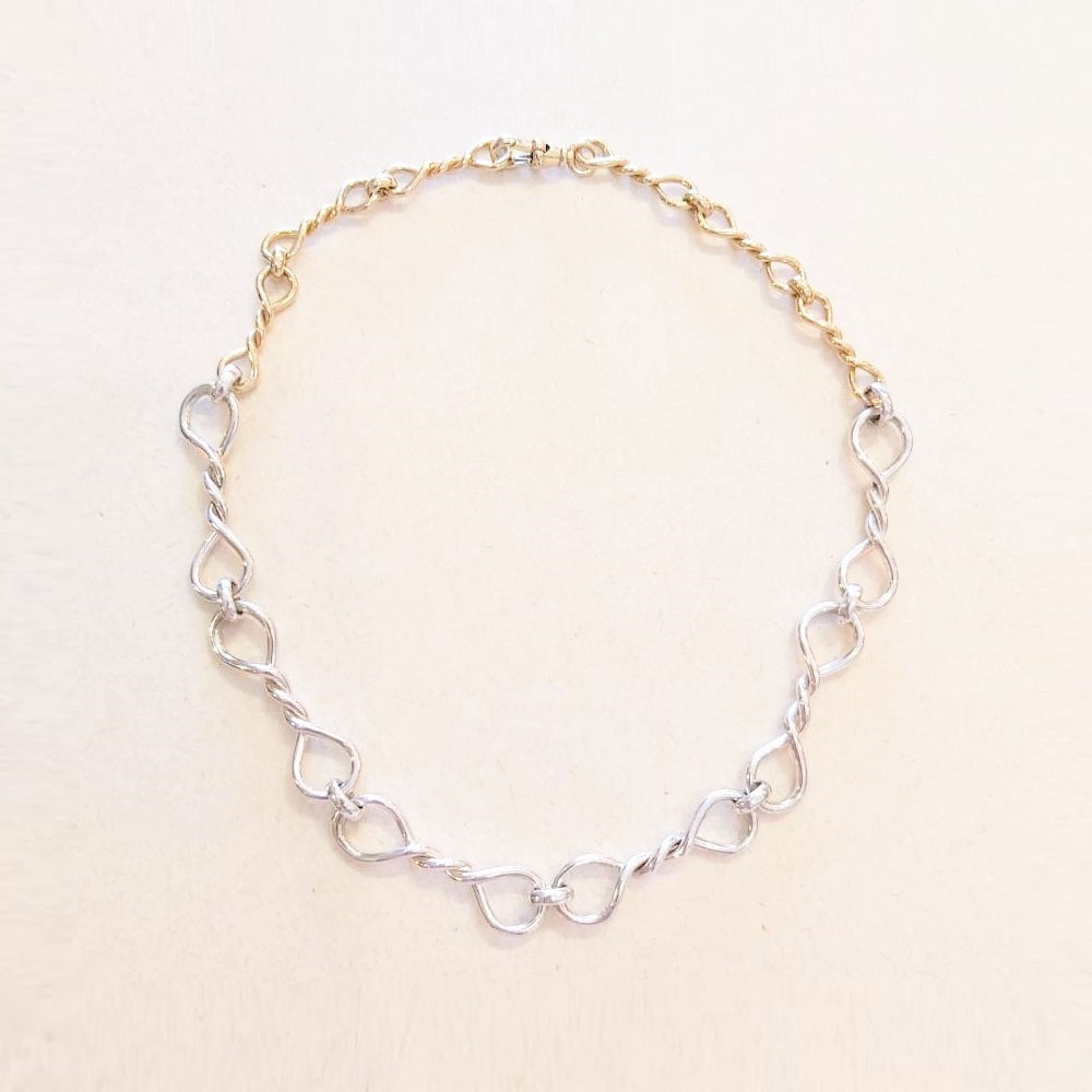 This Infinity Necklace of chains by Magali Pont is a "session" of two different sizes whose links follow each other and alternate in color, silver and gold mix.