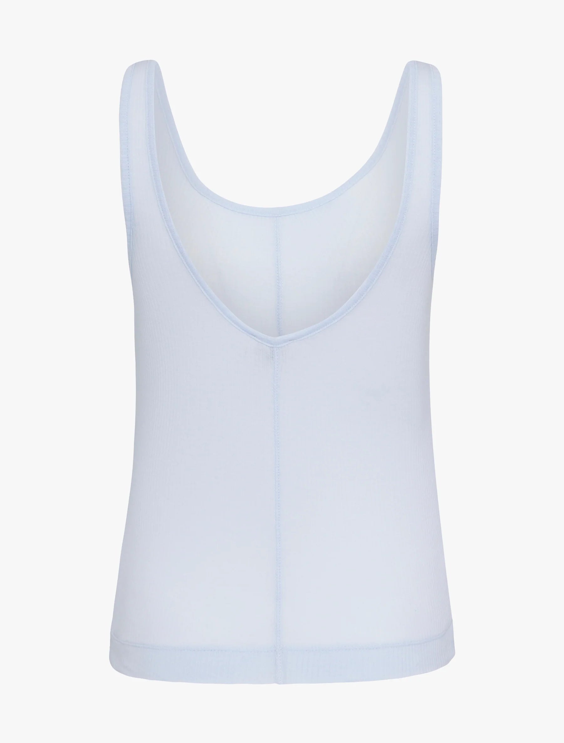 The Ivo Rib top is a comfortable vest made of 100% organic cotton that features a scoop neck and dropped back. The ribbed top has a subtle apparent seam at the front. Layer underneath a shirt and wear with pants or a skirt.
