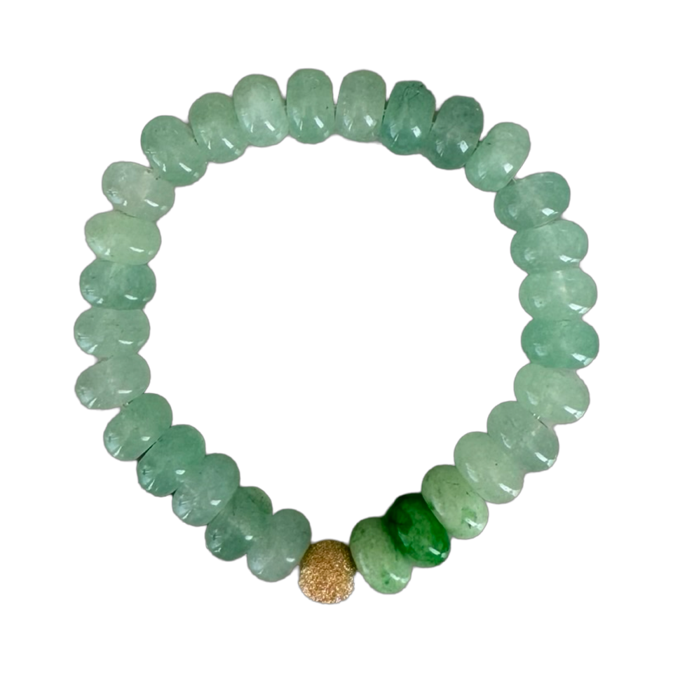One-size-fits-all bracelet crafted on a durable elastic thread, featuring semi-precious stones and 18k gold-plated bead