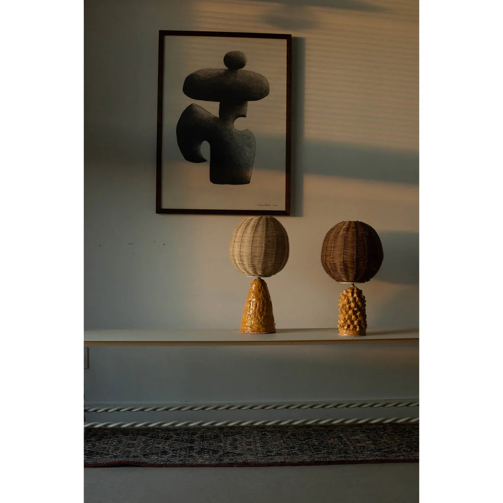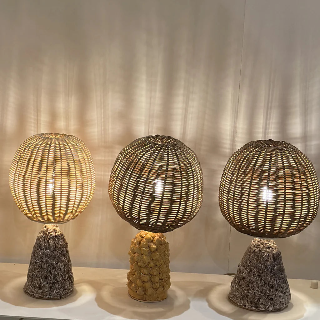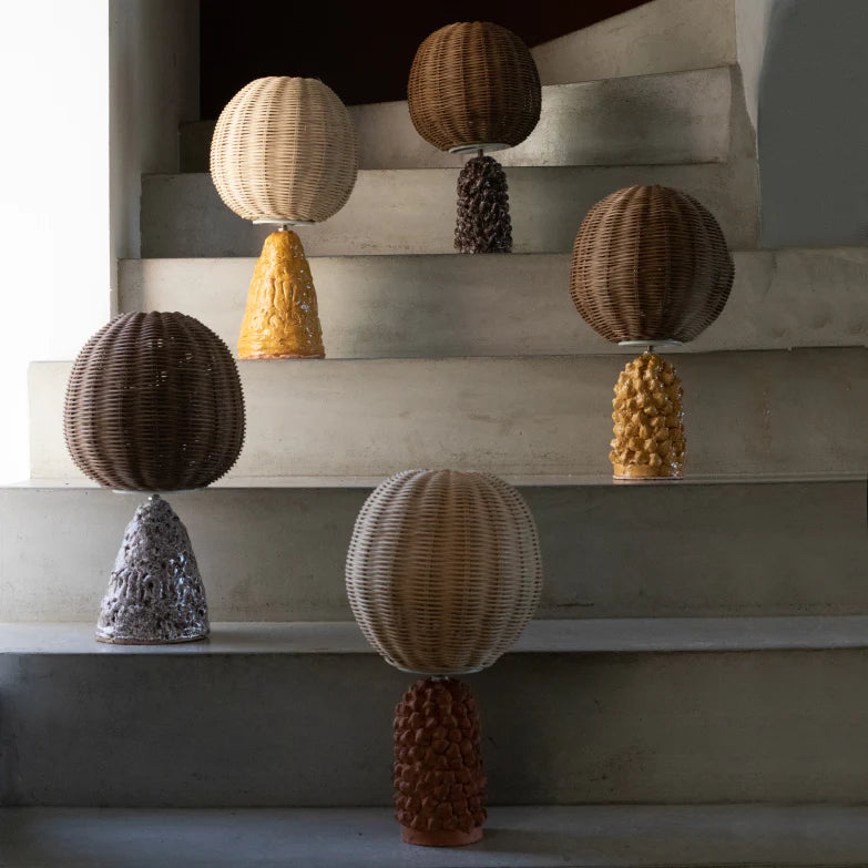 A sculptural bedside essential that brings instant warmth and character. Each lamp features a hand-assembled ceramic base—choose natural terracotta, textured white, or burnt yellow—topped with a woven rattan shade in natural or dark tones. At 40 cm tall and 25 cm across, it’s perfectly sized for bedside tables, alcoves, or cozy corners