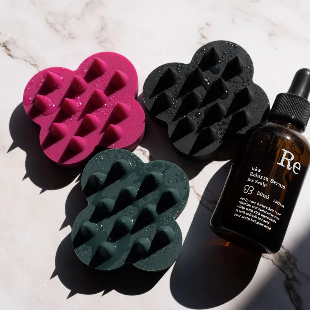 The uka Scalp Brush Kenzan is a Japanese silicone massage brush designed to deeply cleanse the scalp, boost micro‑circulation, and relieve tension. Its acupressure‑point tips help remove buildup during shampooing or enhance treatment serums on dry hair. Available in multiple firmness levels, it supports healthier roots, improved scalp comfort, and a more relaxing hair‑care ritual.